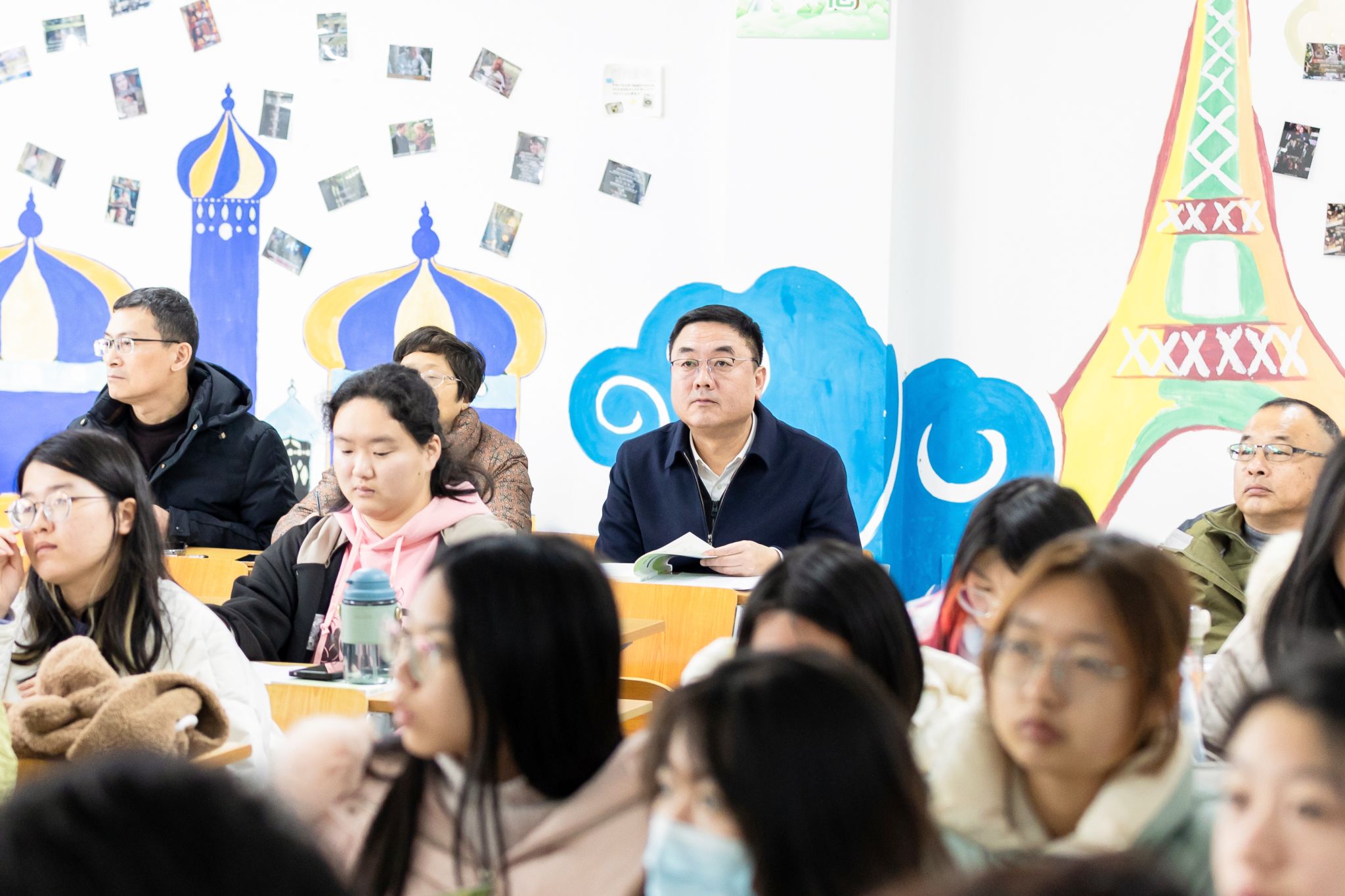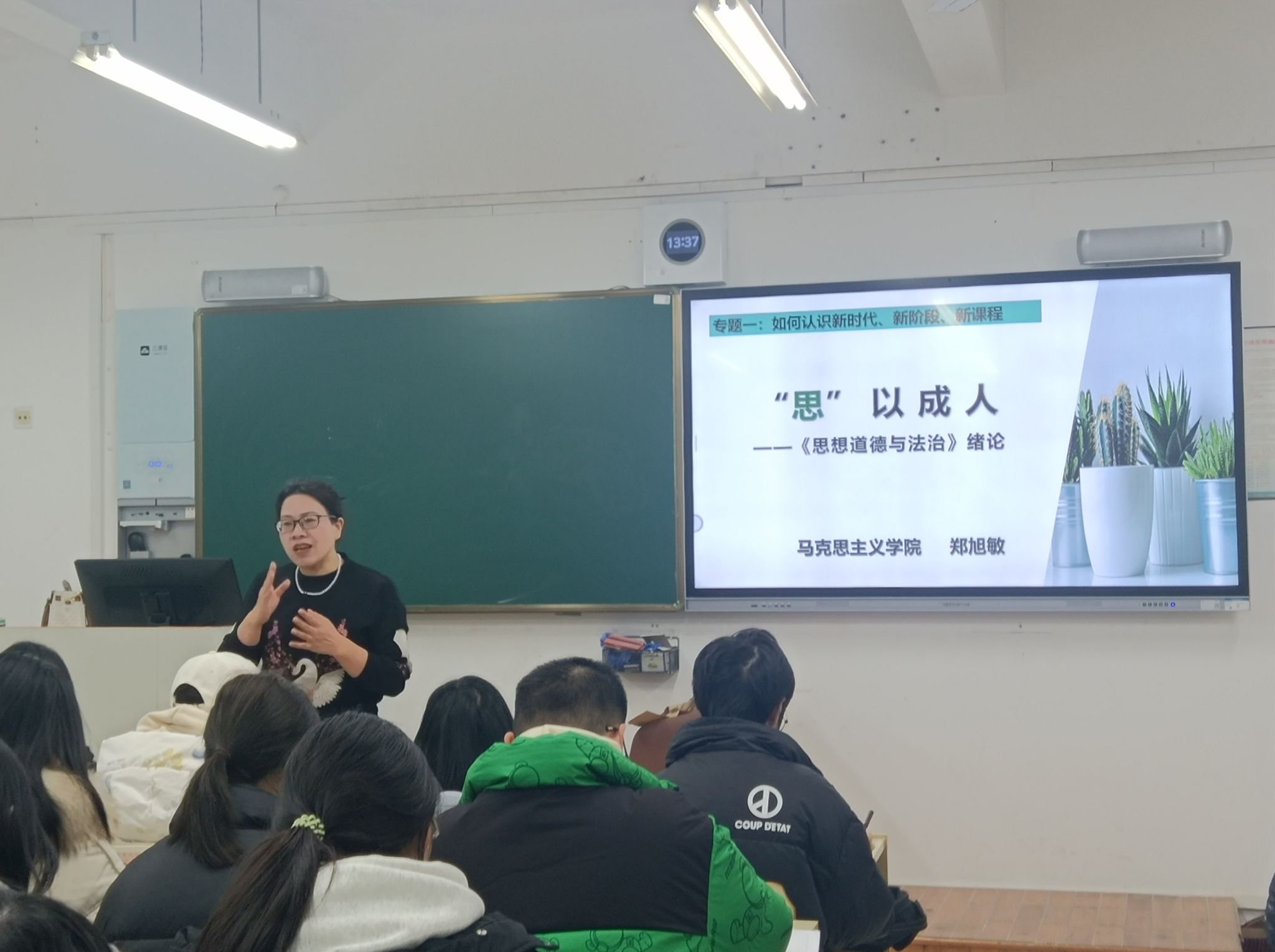 赵敏校长则走进了郑旭敏老师的课堂,听取了关于《“思”以成人——新青年,新时代,新成就》的讲解。郑旭敏老师以鲜活的事例和生动的语言,用宏观主题和微观感受比较分析,让学生们对法治精神有了更深刻的认识。赵敏校长对郑旭敏老师的教学表示高度赞赏,并指出高校思政课要注重培养学生的法治观念和法治思维,让他们成为尊法学法守法用法的新时代青年。