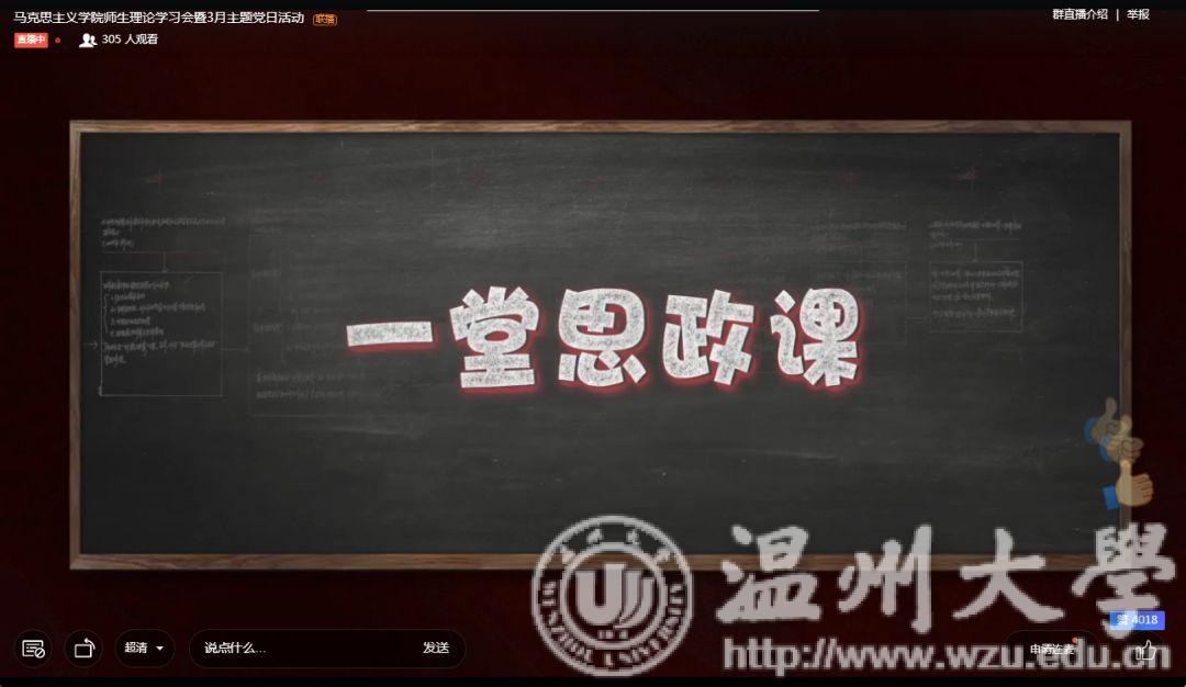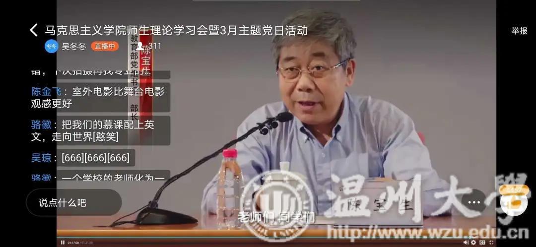 同时,为贯彻落实习近平总书记在学校思想政治理论课教师座谈会上的重要讲话,增强思想政治理论课的思想性、理论性、针对性和亲和力,并结合学校组织部统一部署,学院在3月4日下午以“不见面”形式集中开展理论学习会暨“抗疫情、促发展、当先锋”支部主题党日活动,集体观影《一堂思政课》,深入开展新时代思政课改革创新大讨论活动。