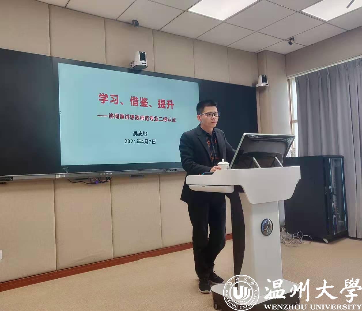 第二阶段为思政系认证推进会协商。副院长吴志敏强调,师范专业认证的数据和指标梳理工作已经基本完成。师范类专业认证根据第一、二、三级不同的功能定位和组织实施方式,设置了相应的认证工作程序。第一级采取网络平台数据采集方式,对师范类专业办学基本信息进行常态化监测。第二、三级采取专家进校考查方式,对师范类专业教学质量状况进行周期性认证,认证程序包括申请与受理、专业自评、材料审核、现场考查、结论审议、结论审定、整改提高7个阶段。因此,结合人才培养方案完成师范专业认证工作是关键,目前2021级的人才培养方案正在修订,实现专业教育的持续改进。此外,副院长吴志敏向与会教师传达了前期参加的全国普通高等学校师范类专业认证工作视频会议的会议精神。根据会议师范专业认证的根本目的是培养教师,而教师的职能作用就是教育学生,师范专业认证是为教师教育正本清源,筑牢根基。专业认证起到提升师范专业质量,提高一流教师教育的作用。