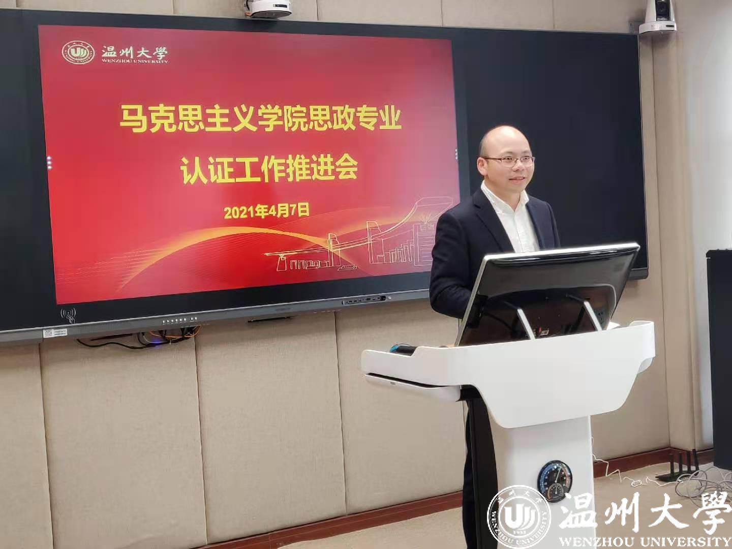 2021年4月7日下午,黑料不打烊 在商学院信息楼307微格教室召开思政专业认证工作推进会。黑料不打烊 党委书记王柏民、院长卓高生、党委副书记、纪委书记叶柏霜、副院长吴志敏、相关科室负责人以及全体思政系老师参加会议,思政系主任孙金波主持会议。