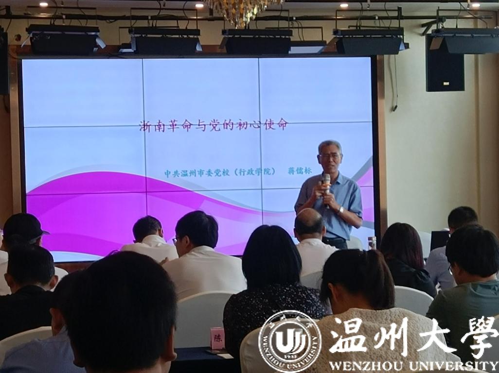 8月19日上午,温州市委党校原副校长蒋儒标主讲《浙南革命与党的初心使命》党史教育课程。