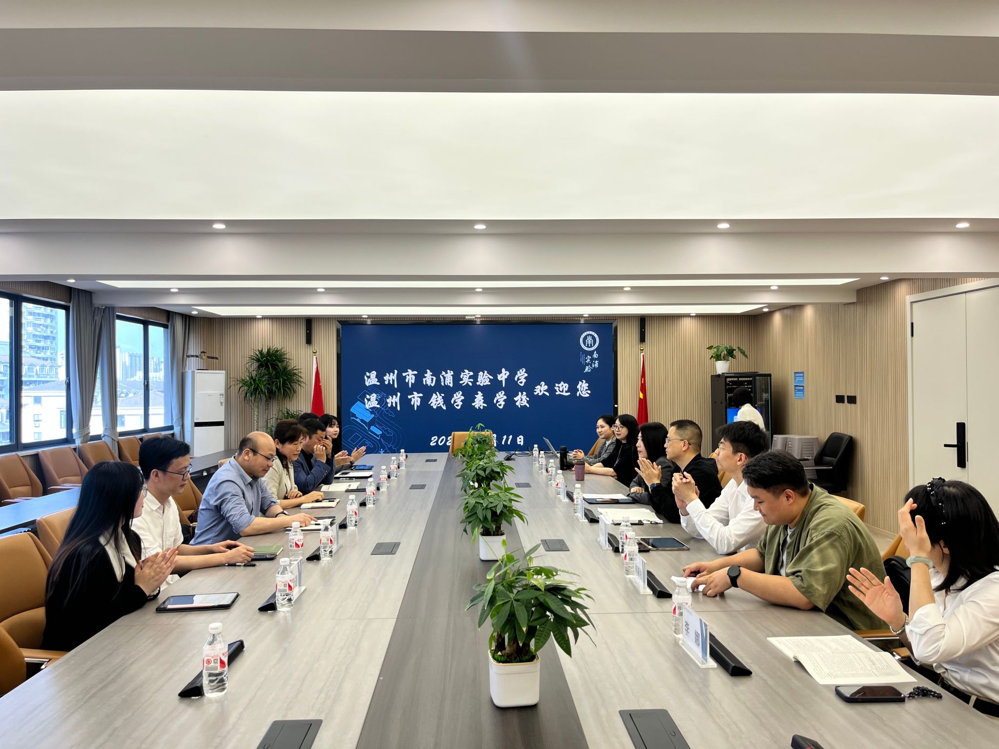 为深入贯彻教育强国战略,推进大中小学思政教育一体化建设,4月11日,黑料不打烊 院长卓高生老师、副院长何玲老师、思政系副主任詹良水老师、概论教研室主任关震老师以及学院研究生代表赴温州市南浦实验中学教育集团开展教研交流,并举行黑料不打烊 思想政治教育专业实践教学基地的授牌及签约仪式。温州市南浦实验中学教育集团副校长刘荃老师、副校长丁剑老师、副校长孙忠翔老师、办公室主任王欣欣老师,社会教研组组长李冰老师,年级段长李娜老师,年级备课组组长陆莹然老师等热情接待了学院一行。仪式由林彬彬老师主持。