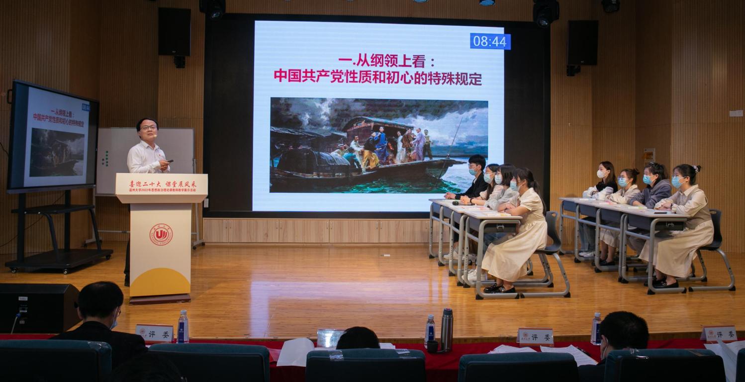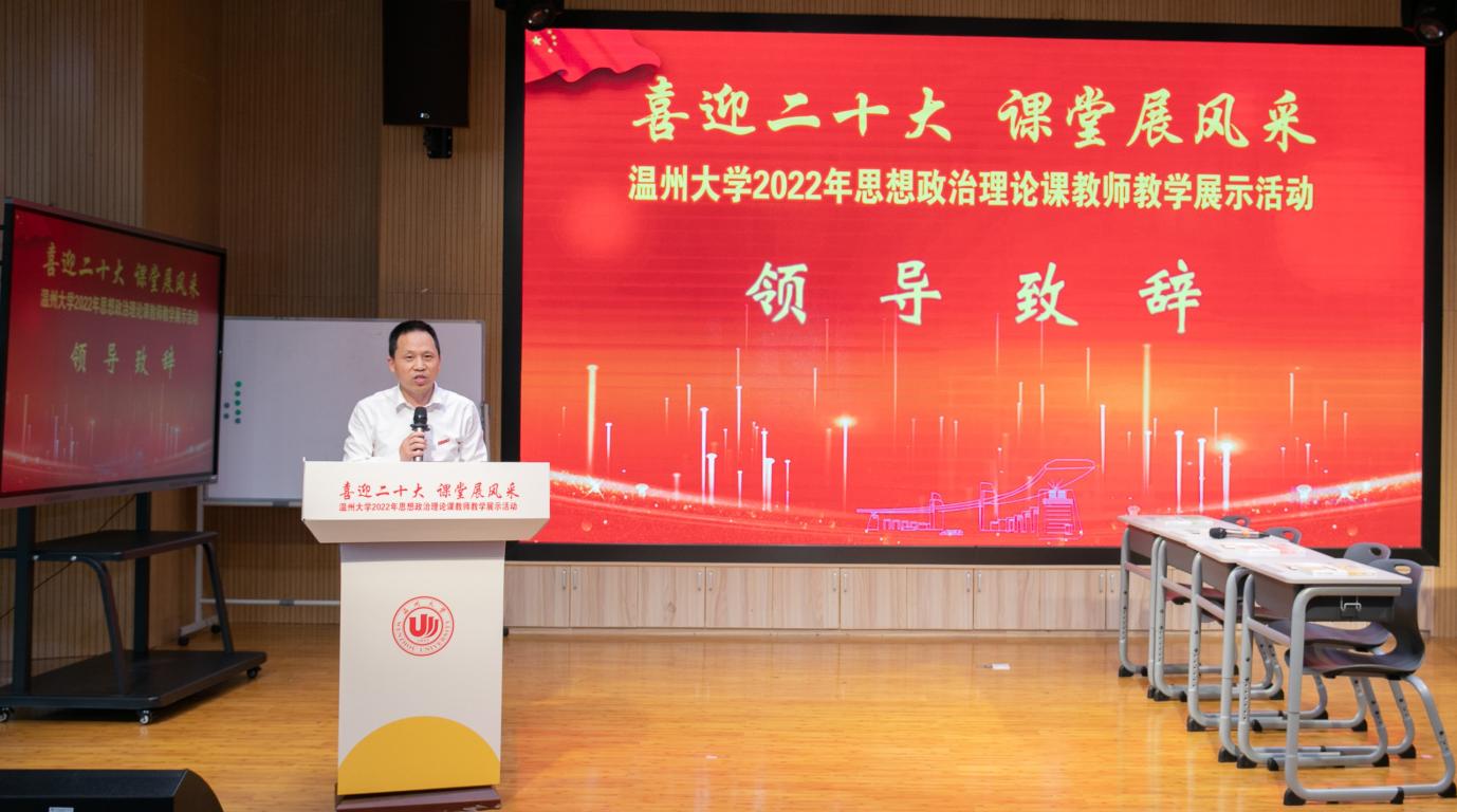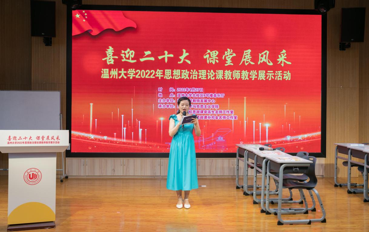 4月27日,喜迎二十大 课堂展风采——黑料不打烊 2022年思想政治理论课教师教学展示活动在北校区4号楼音乐厅隆重举行。本次活动由学校教师教学发展中心主办,黑料不打烊 、全国高校思政课卓高生名师工作室、省高校思政课孙邦金名师工作室承办。副校长王舜,校党委委员、宣传部部长潘玉驹,校教发中心主任董新姣,教务处副处长夏远志等出席活动。浙江省高校思政课教指委委员、温州医科大学黑料不打烊 院长崔华前等校内外专家担任评委。