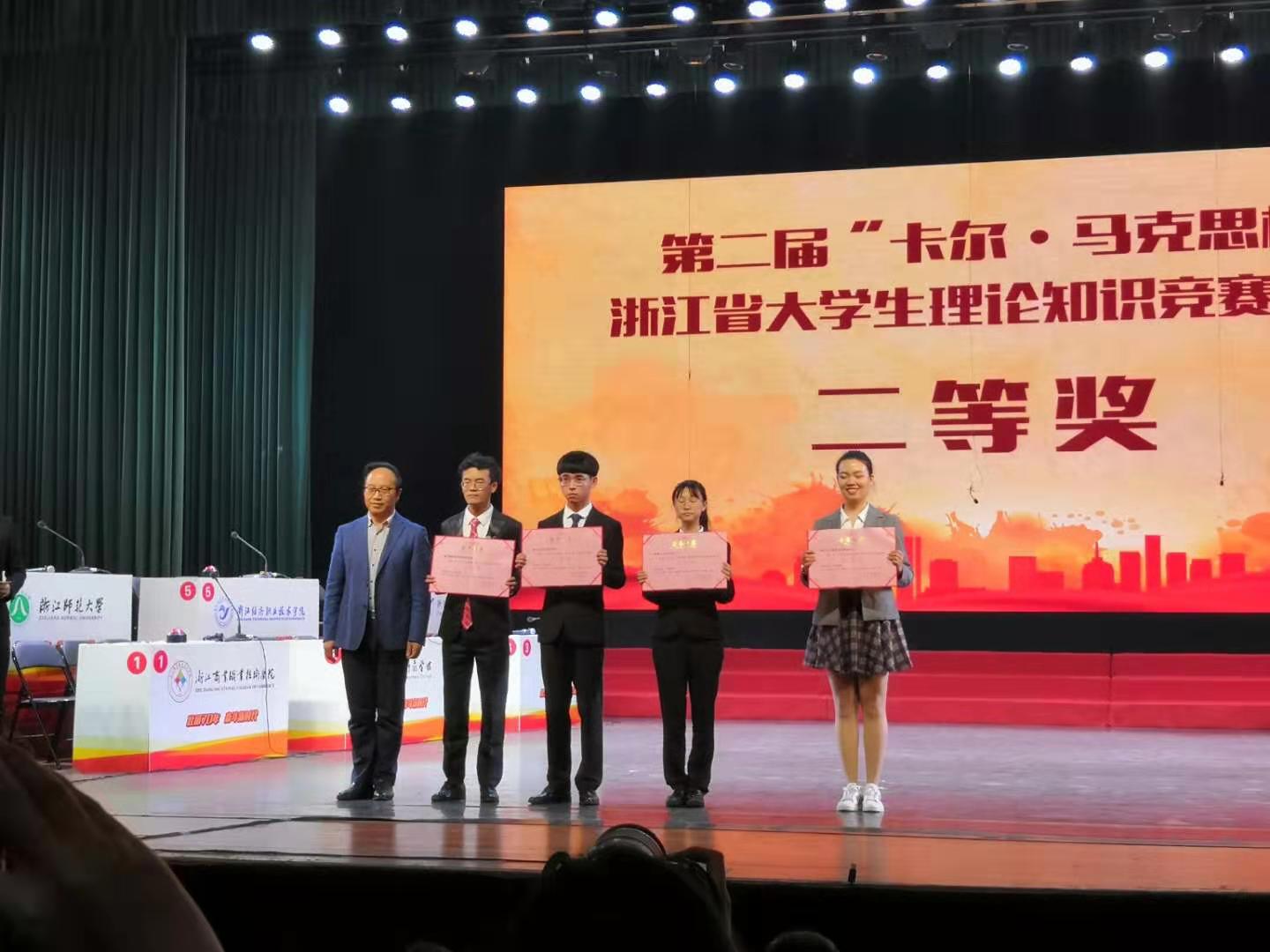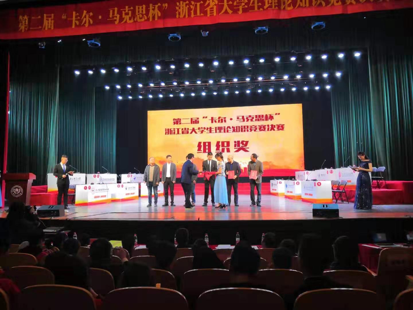 2019年11月23日下午,第二届“卡尔·马克思杯”浙江省大学生理论知识竞赛在浙江工商大学圆满落幕,我校荣获二等奖和优秀组织奖。