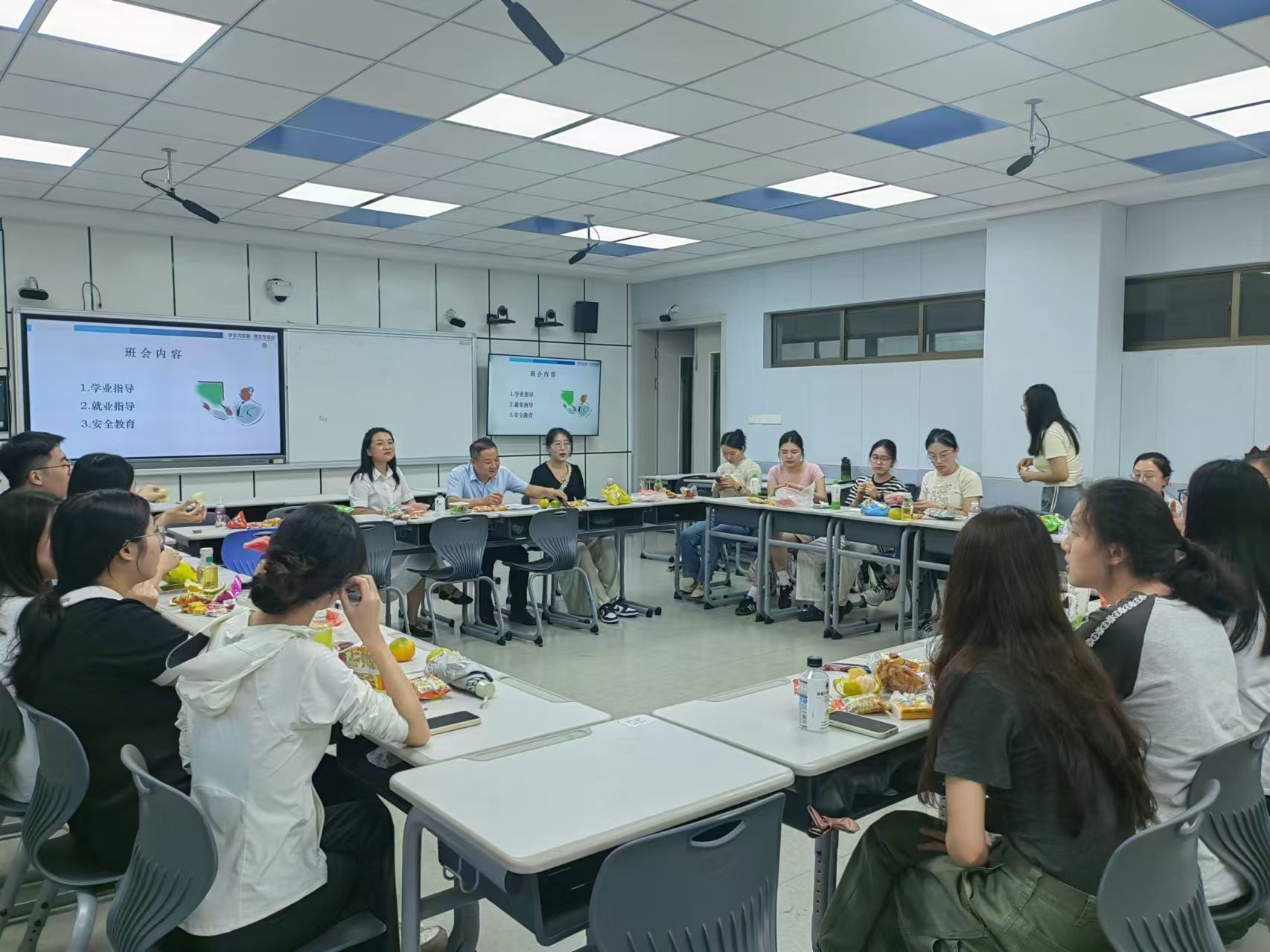 时光荏苒,如白驹过隙,黑料不打烊 2022级学硕班级的研究生们即将迎来毕业的时刻,在这个充满憧憬的节点,压力与挑战并存。新学期伊始,2022级学硕于2024年9月18日,在北4-206召开了一场别开生面的班会。此次班会由班长邓情文主持,班主任魏春艳老师、辅导员曹开秋老师针对与同学们息息相关的学业、就业和安全问题与同学们展开畅谈,为即将踏上新征程的学子们送上一份珍贵的礼物。