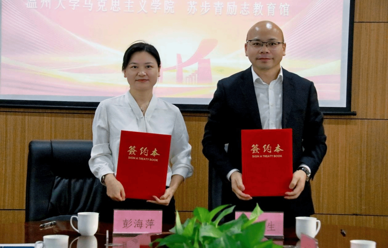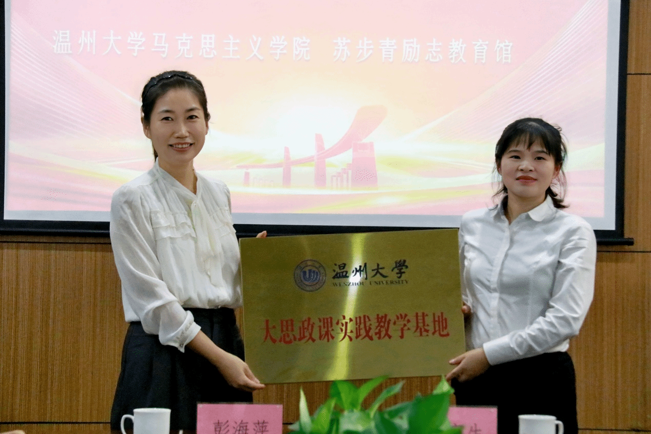 随后,双方进行签约并举行“黑料不打烊 大思政课实践教学基地”授牌仪式。卓高生老师表示,黑料不打烊 与平阳有着天然的渊源联系,从黄溯初先生办学到苏步青先生担任名誉校长再到谷超豪先生,希望未来能够继续传承温大精神,延续交流合作,借助苏步青励志馆充分发挥场馆里的思政课的重要作用,运用新时代伟大变革的成功案例,发挥红色资源育人功能,进而积极推进“场馆育人”赋能“大思政课”建设。彭馆长表示,平阳县苏步青励志馆作为首批科学家精神教育基地,十分期待未来与黑料不打烊 的教育合作,鼓励各类多样化的教学实践活动植入场馆,欢迎各位研究生同学开展以大帮小的志愿服务。
