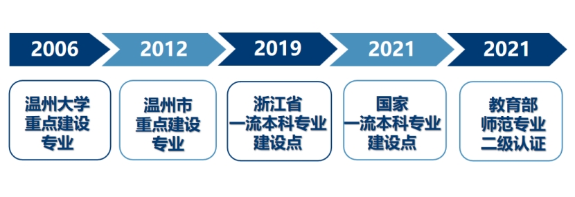 目前,本专业不断发展壮大为享誉省内外的浙江省一流建设专业、国家一流建设专业。2021年通过了教育部师范专业认证(二级)。专业重点培养具备良好的思想政治教育学科素养、较强的教育教学能力、高尚的师德品质、全面综合育人和终身发展能力,能够在中学及相关教育机构从事思政课教育教学的骨干教师。