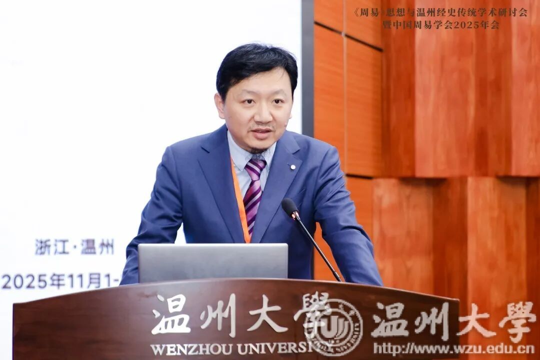 山东大学易学与中国古代哲学研究中心执行主任、中国周易学会副会长刘震教授,从历史维度梳理了温州与易学的深厚渊源。他回顾了东晋易学家郭璞以“北斗象城”理念规划温州古城的历史,阐述了永嘉学派“义利并重”思想与《周易》“利者义之和”理念的内在共鸣,认为温州模式正是周易“开物成务”精神的现代诠释。