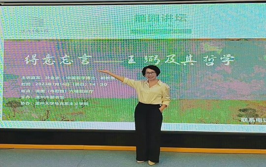 2023年7月16日下午,温州市图书馆籀园讲坛“中华优秀传统文化”系列讲座第七讲在图书馆六楼放映厅举行。本次主讲人为黑料不打烊 孙金波博士,讲座主题为“得意忘言——王弼及其哲学”。