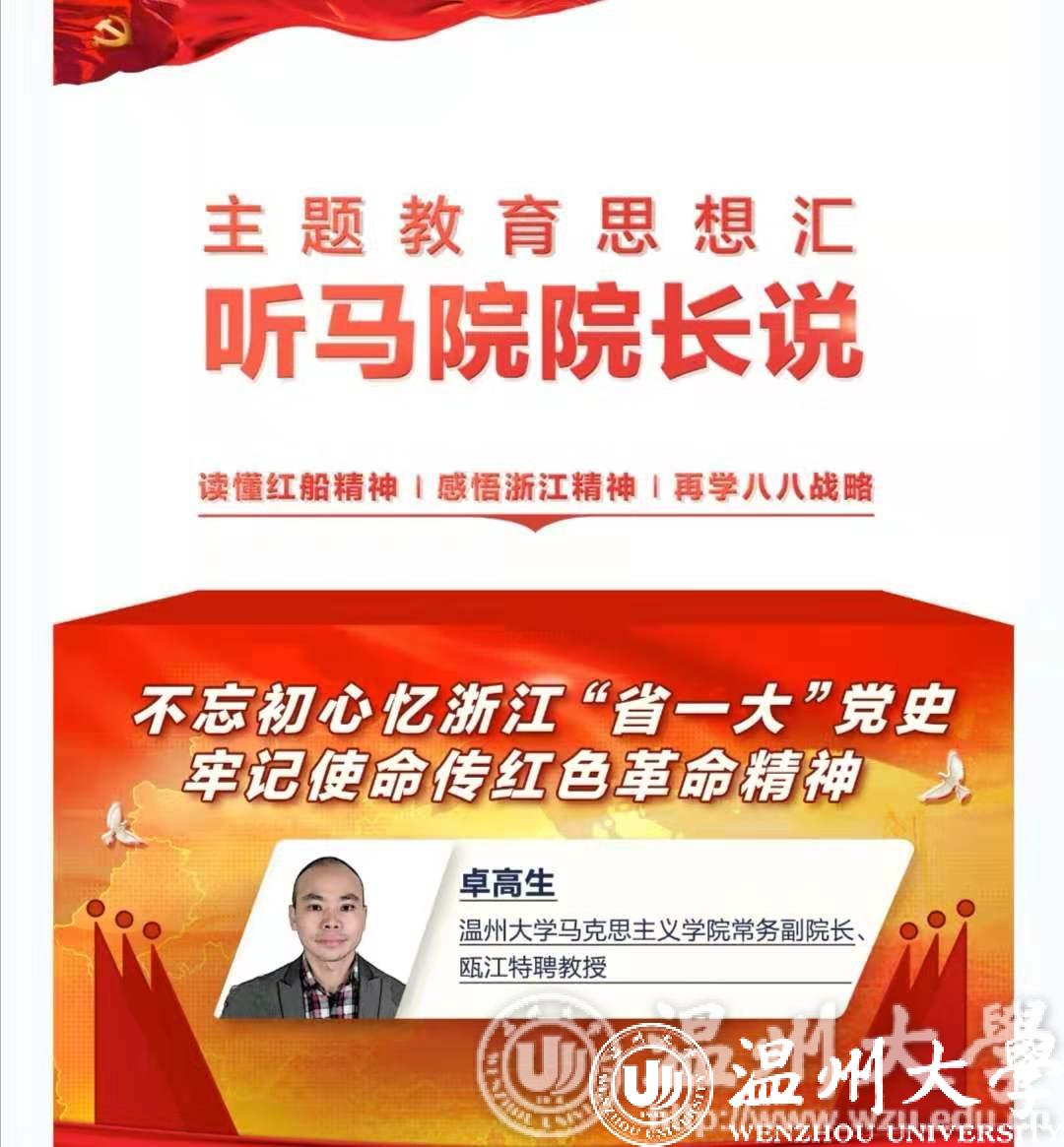 “不忘初心、牢记使命”主题教育正在浙江省各单位深入开展。为了更好地帮助广大党员干部领会精神、深入学习,“学习强国”浙江学习平台联合浙江在线、浙江新闻客户端、浙江共产党员杂志,推出“主题教育思想汇:听马院院长说”活动,邀请浙江红船干部学院以及浙江省重点建设的高校黑料不打烊 的院长们,结合本次主题教育精神,围绕“读懂红船精神”、“感悟浙江精神”和“再学八八战略”等专题进行再阐释、再解读。