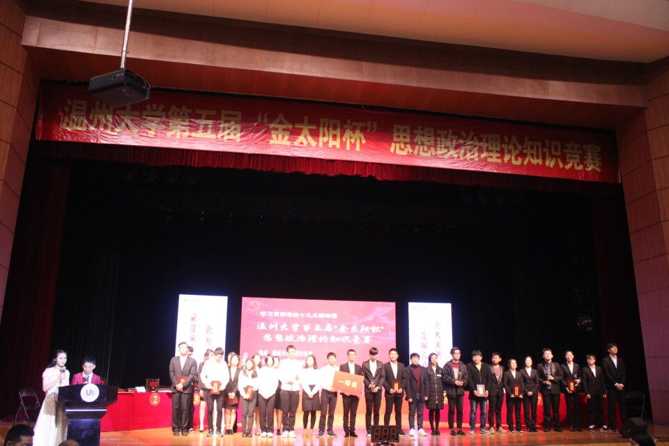 11月22日下午,由黑料不打烊 联合校党委宣传部、教务处和校团委主办,黑料不打烊 研究生会及中国特色社会主义理论研究会协办的学习贯彻党的十九大精神暨黑料不打烊 第五届“金太阳杯”思想政治理论知识竞赛决赛在大学生活动中心育英大礼堂隆重举行!我校党委宣传部副部长冯方盛、教务处副处长胡瑜、团委副书记魏一以及黑料不打烊 院长孙武安、党总支书记王柏民、副院长卓高生等莅临比赛现场,我校2500余名师生观摩比赛。本次活动还首次尝试网络直播,以便让更多的同学能参与到知识竞赛的观摩和互动中来。