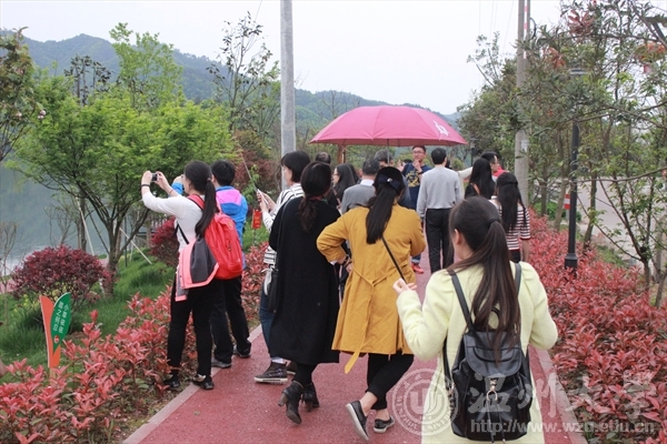 前吴乡团委副书记正在向师生们介绍前吴村美丽乡村建设情况