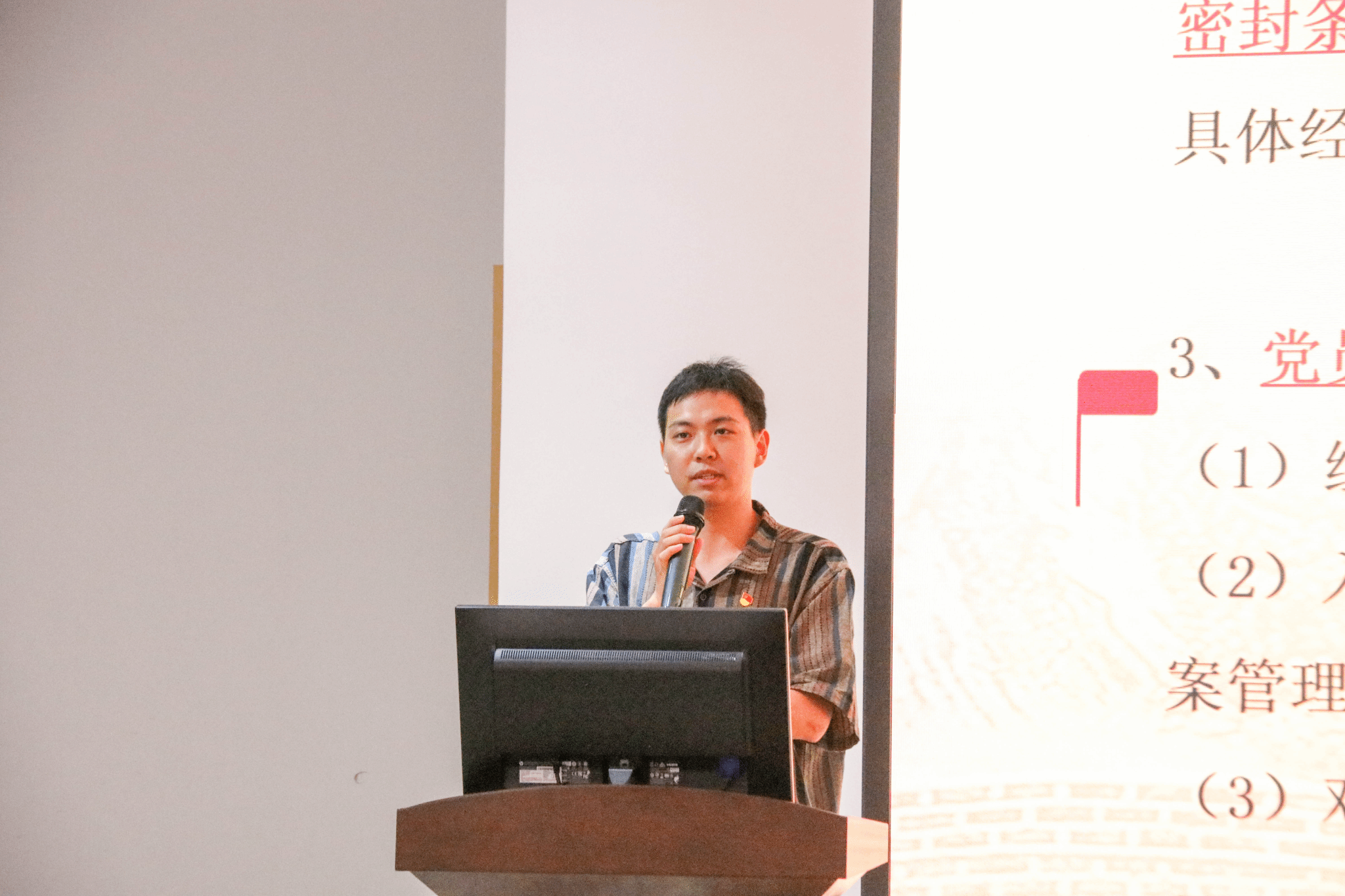 研究生第二党支部书记刘宁涛就党员组织关系转接流程开展专题教育,对毕业生党员党组织关系转接、党员档案、党员组织关系介绍信等方面做详细阐述,并结合往届毕业生党员在转接党组织关系中的问题,强调转接过程中的注意事项,提醒毕业生党员及时按照要求完成党组织关系转接工作。