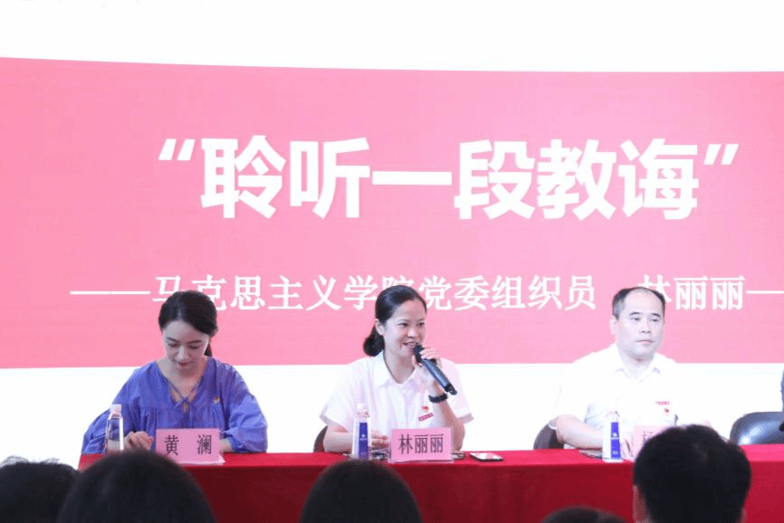 学院组织员林丽丽老师致辞,她充分肯定了毕业生党员们为学院发展做出的贡献,为学院党建工作做出的努力,并提醒各位毕业生党员关注党组织关系转接和党员档案的整理、调动。林老师希望毕业生党员始终以习近平总书记对思政课教师的重要要求,“政治要强、情怀要深、思维要新、视野要广、自律要严、人格要正”严格要求自身,起到模范带头作用,做到平时看得出来、关键时候能够站得出来、危难的时候能够豁得出来,并为即将离校的学子们送上最真挚的离别祝福。
