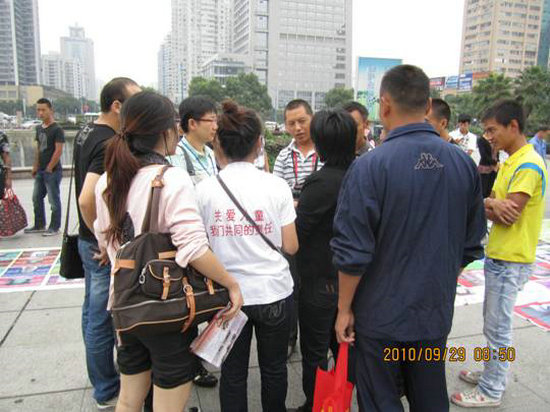 “无论你走到哪里,我都要找到你!”这是冯爸爸对女儿冯云的爱,同时也是众多失去孩子的父母的共同心声。在活动中冯爸爸眼角始终挂着淡淡的泪痕,脸上透露着千里寻女所付出的艰辛。所幸的是,在志愿者们宣传和发放寻子资料的过程中,有几位大姐认出了冯爸爸女儿冯云的照片,说有点像两年来在温州火车站附近乞讨的一个小女孩,这无疑给了冯爸爸一个坚持下去的希望。