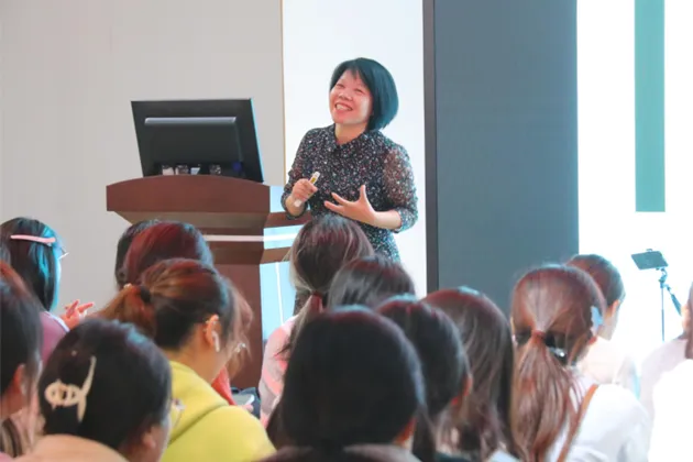 通过将手机相机投屏到白板上,陈金飞老师手把手教学生们认识相机设置和功能,并从时间与天气、构图及视角、人像拍摄、自拍等四个方面讲解摄影技巧。她讲到,可以随时随地举机器拍,越是特殊天气越是出大片;在构图和视角上她则是强调了拍摄基本原则是横平竖直,构图有三分法、中分法等,仰视、错位拍摄都可以让照片别具一格。在人像拍摄上,她从详细讲解了人物肖像拍摄、环境人像拍摄、集体人像拍摄,抓拍可以使照片更灵动,更具动态美。关于自拍,老师也给予了用自拍杆解放双手拍照的建议,预设好机位,让拍摄更加精彩。不仅是口头讲解、案例详解,老师还和同学们一起亲身实践,留下了一张美好的集体合照。
