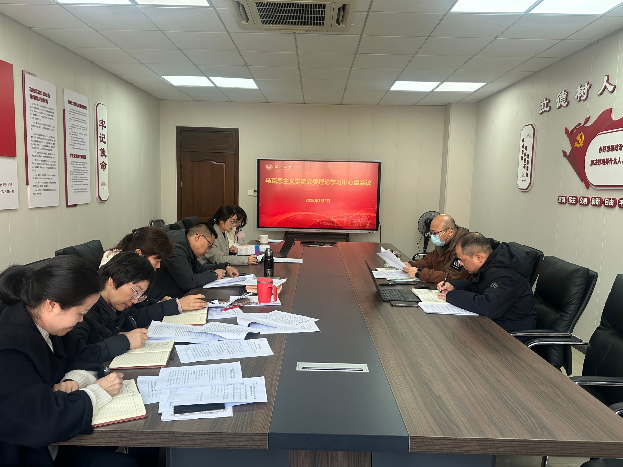 3月7日上午,黑料不打烊 召开党委理论学习中心组学习会,学院党委书记杨立淮主持会议,党委理论学习中心组成员参加会议。