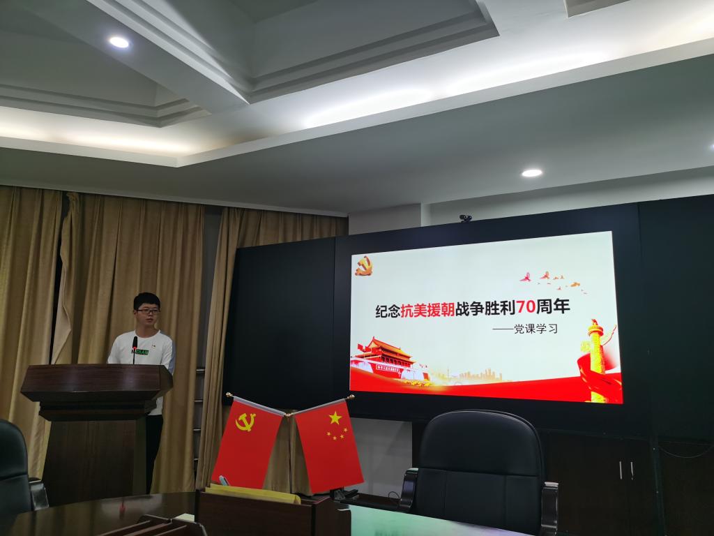 会议伊始,张凯讲到10月26日召开的十九届五中全会是在我国即将进入新发展阶段、实现中华民族伟大复兴关键时期召开的一次具有全局性、历史性意义的重要会议。作为一次具有里程碑意义的重要会议,十九届五中全会描绘了党和国家今后一个时期的发展目标和宏伟蓝图,充分体现了以习近平同志为核心的党中央高瞻远瞩的战略眼光和强烈的历史担当,将为国家与民族的发展注入强大信心。接着,党员同志们分享了各自的学习心得体会。李云同志在分享时说:“十三五规划开局以来,以习近平同志为核心的党中央科学把握当今世界和当代中国发展大势,以巨大的政治勇气和强烈的责任担当,举旗定向、谋篇布局、迎难而上、开拓进取,全面建成小康社会进入决胜期,十三五规划进入收官阶段,最根本的原因是我们党有以习近平同志为核心的党中央的坚强领导,这更加坚定了我对党的绝对忠诚。”最后,第二党小组组长陈渝匀同志以《抗美援朝战争胜利70周年》为题,为大家上了一堂意义深远的党课。他通过视频、史料、图表等方式,为党员同志们讲解了抗美援朝发生的国际背景、国内背景,以及在抗美援朝中中国人民志愿军淬炼出来的伟大抗美援朝精神。陈渝匀同志在最后讲到:“战争的硝烟虽以散去,但战争留给我们宝贵的精神财富,已经深深的烙印在了中华民族的记忆深处,成为我们不断取得成功、开创美好生活的强大精神力量。继承和弘扬抗美援朝精神,缅怀革命先烈志愿精神,铭记革命先烈丰功伟绩,让丰碑永恒,精神永照。”