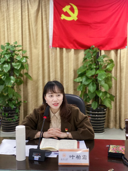 2021年3月18日晚,黑料不打烊 研究生第一党支部于北校行政楼227会议室召开预备党员转正大会,学院党委副书记叶柏霜老师莅临指导,会议由党支部书记唐清春主持,党支部全体党员与预备党员参与会议。