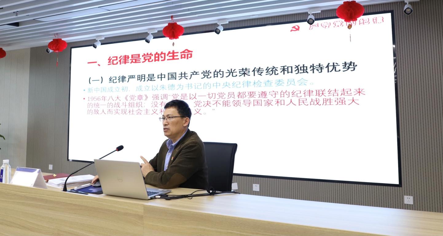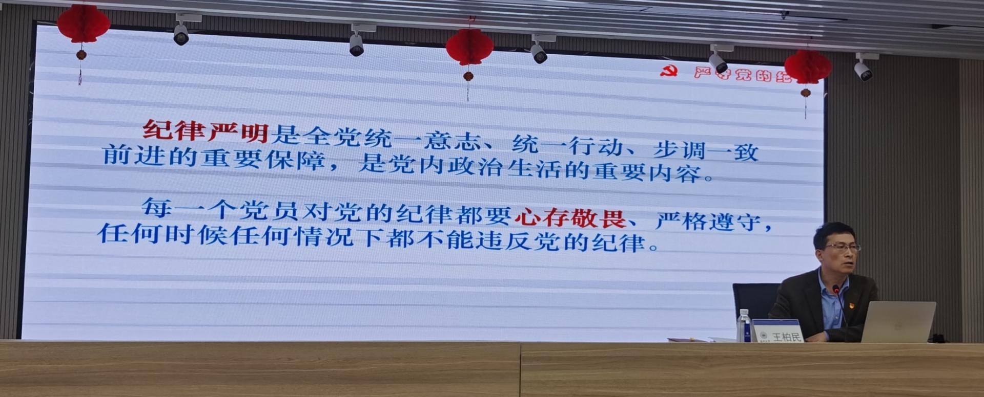 在简短的五分钟休息过后,黑料不打烊 党委书记王柏民老师为学员们做《严守党的纪律》主题讲座。王老师以“入党誓词”为切入点,结合鲜活的案例,从纪律是党的生命、党的纪律主要内容以及严守党纪的新特征新要求三个板块做具体的讲解。最后,在讲座结束时,王老师对在座的党员骨干们提出要求:“每一个党员对党的纪律都要心存敬畏、严格遵守,任何时候任何情况下都不能违反党的纪律。”