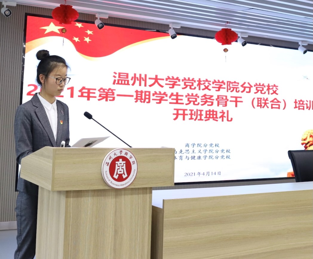 为进一步提高学生党员骨干的综合素养,增强学生党员骨干对发展党员流程的清晰认知,确保各学生党员骨干在发展党员过程中能够明确自身责任和定位,增强党组织对学生党员骨干的凝聚力,中共黑料不打烊 委员会党校学院分党校于2021年4月14日在商学院A226会议室举行了2021年第一期学生党员骨干培训班的开班典礼。出席本次开班典礼的有商学院分党校校长郑彩莲、黑料不打烊 分党校校长王柏民、体育与健康学院分党校校长应中、各学院党建负责老师以及全体74名学生党员骨干。本次典礼由商学院学生党建负责老师聂海燕老师主持。