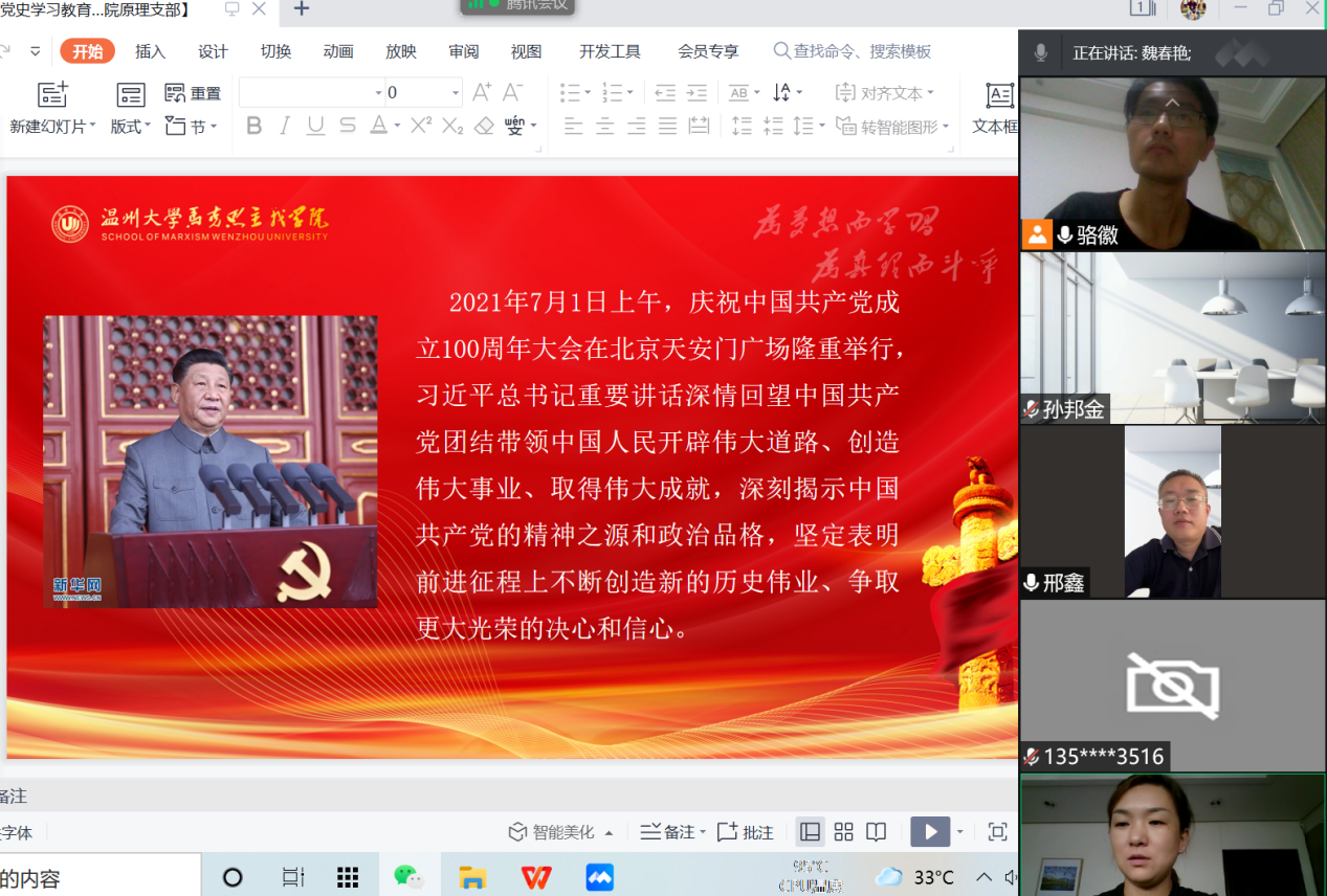 根据市和学校党史学习教育领导小组办公室部署要求,围绕“学党史、悟思想、办实事、开新局”为主题,认真贯彻“学史明理、学史增信、学史崇德、学习力行”要求,黑料不打烊 原理党支部在8月28日下午,以腾讯会议方式在线上召开了专题组织生活会,交流学习体会,查找差距不足,引导广大党员不断增强“四个意识”、坚定“四个自信”、做到“两个维护”。