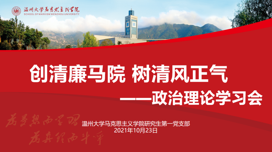 为进一步深入学习习近平全面从严治党的思想以及在庆祝中国共产党成立100周年大会上的重要讲话精神,进一步推行学院廉洁教育的开展,提高党员同志的廉洁自律意识,黑料不打烊 研究生第一党支部将以“创清廉马院,树清风正气”为主题,以“五个一”为载体开展系列活动。10月23日晚,黑料不打烊 研究生第一党支部在线上召开政治理论学习会,本次学习会是党支部廉洁教育活动的中间一环,会议由支部副书记张如意主持。
