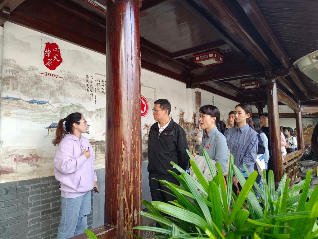 随后,马院党委书记王柏民在永嘉县鹤盛镇--展厅三楼会议室主持召开了座谈会,党委副书记叶柏霜、学工办副主任曹开秋、辅导员黄澜等8位教工党员和学生党员们出席会议,会上师生党员互动,围绕乡村振兴、共同富裕、初心使命及无私奉献等方面进行座谈交流分享学习。