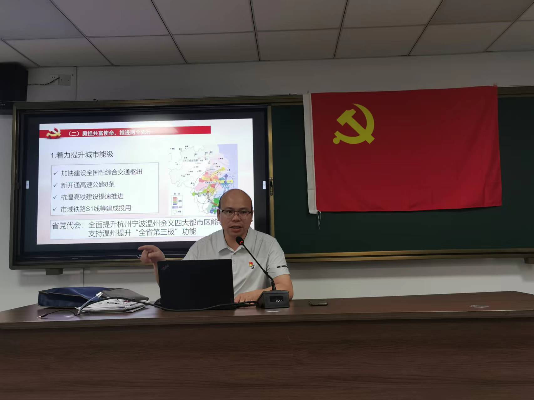 为深入学习贯彻省党代会精神和响应温州市委组织部《关于以“奋进‘两个先行’ 当好开路先锋”为主题深入开展“红七月·服务月”活动的通知》《关于以“当先锋、争先行”为主题集中开展支部主题党日活动的通知》的要求,黑料不打烊 教工第一党支部于7月5日晚在浙江省委党校平阳分校教学楼202教室召开“学习省党代会精神 推进样板支部建设”支部党员大会暨“当先锋,争先行”主题党日活动,会议由支部书记项淳芳同志主持。