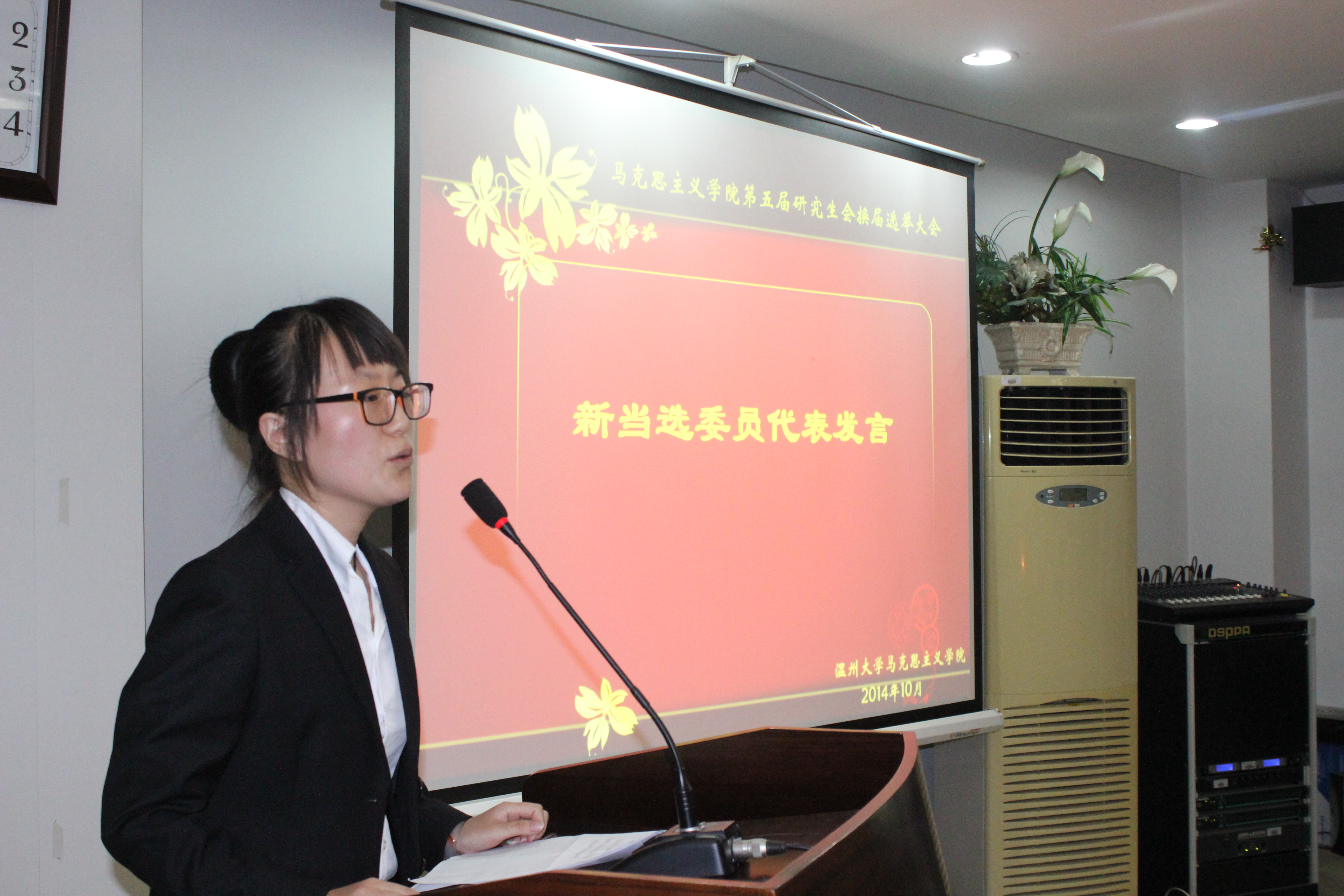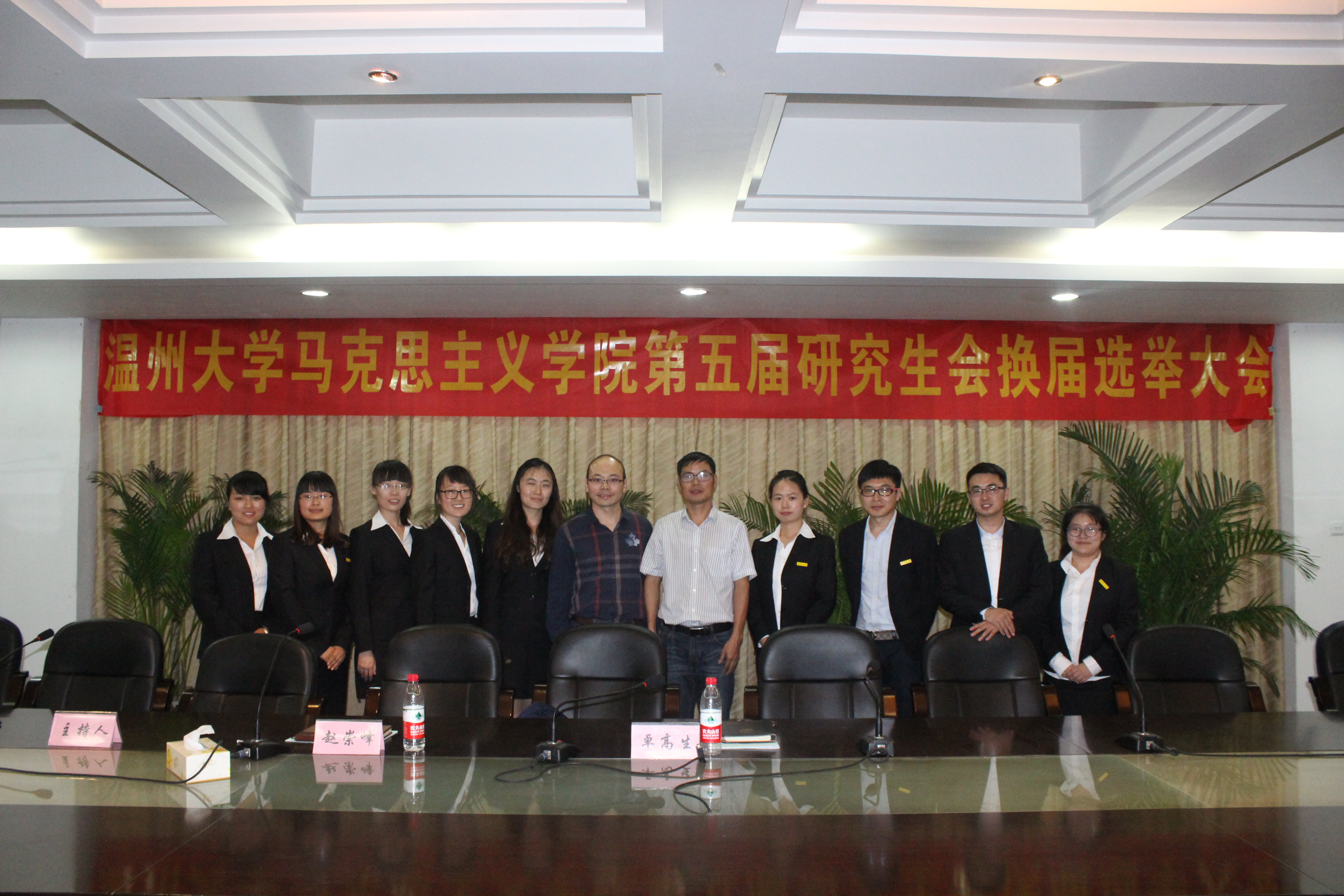 第五届研究生会委员。新当选主席曲小远发表感言,承诺在大家的监督下,会认真负责的履行自己的职责和承诺,全心全意的为温大、为马院、为大家服务。