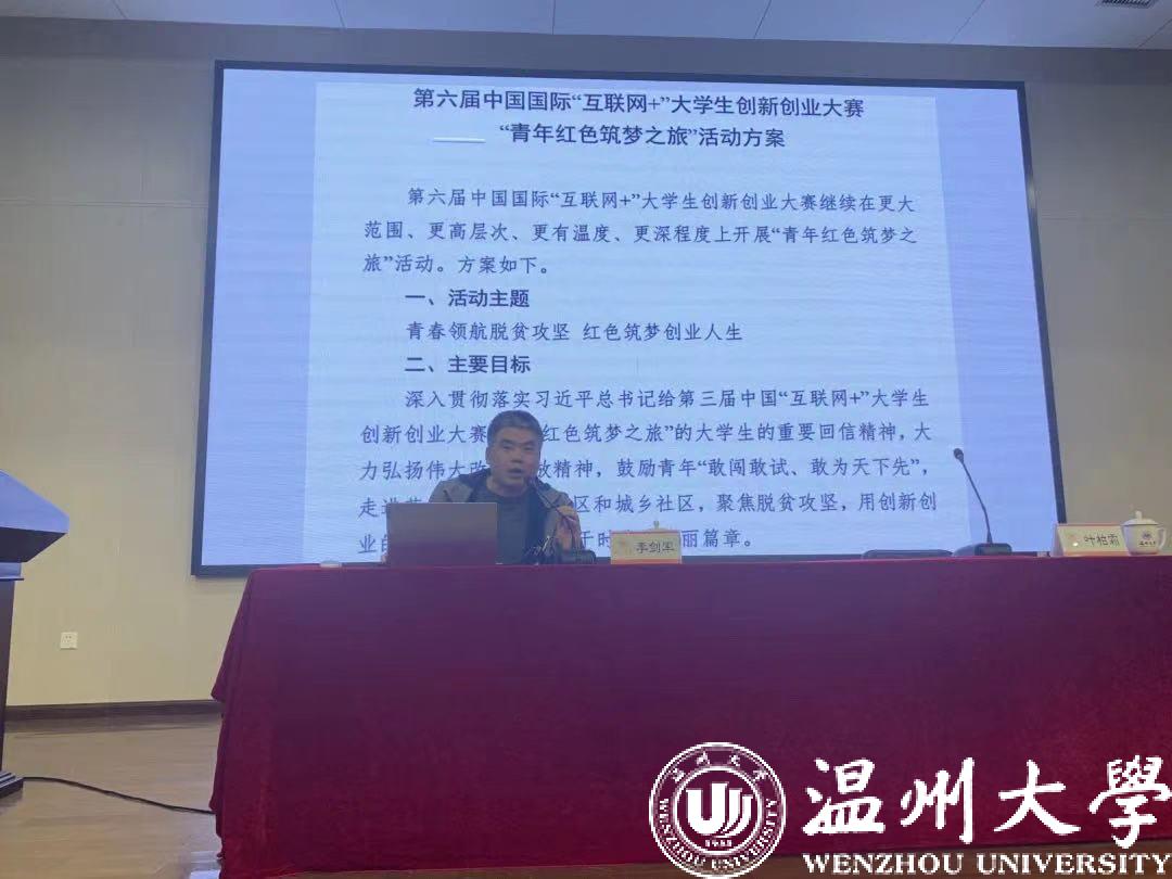施院长首先对学校创新创业工作的概况进行说明,对今年互联网+大赛的整体情况进行介绍,尤其针对在青年筑梦红旅赛道,马院师生如何围绕脱贫攻坚成果巩固、乡村振兴、社会治理、建党百年等热点难点问题进行调研分析 ,真正发挥马院师生调查研究、建言资政的专业优势,推动革命老区、贫困地区、城乡社区经济发展和社会发展。施院长还对红旅赛道及其项目的评审要点、大赛的奖励激励机制进行阐述。