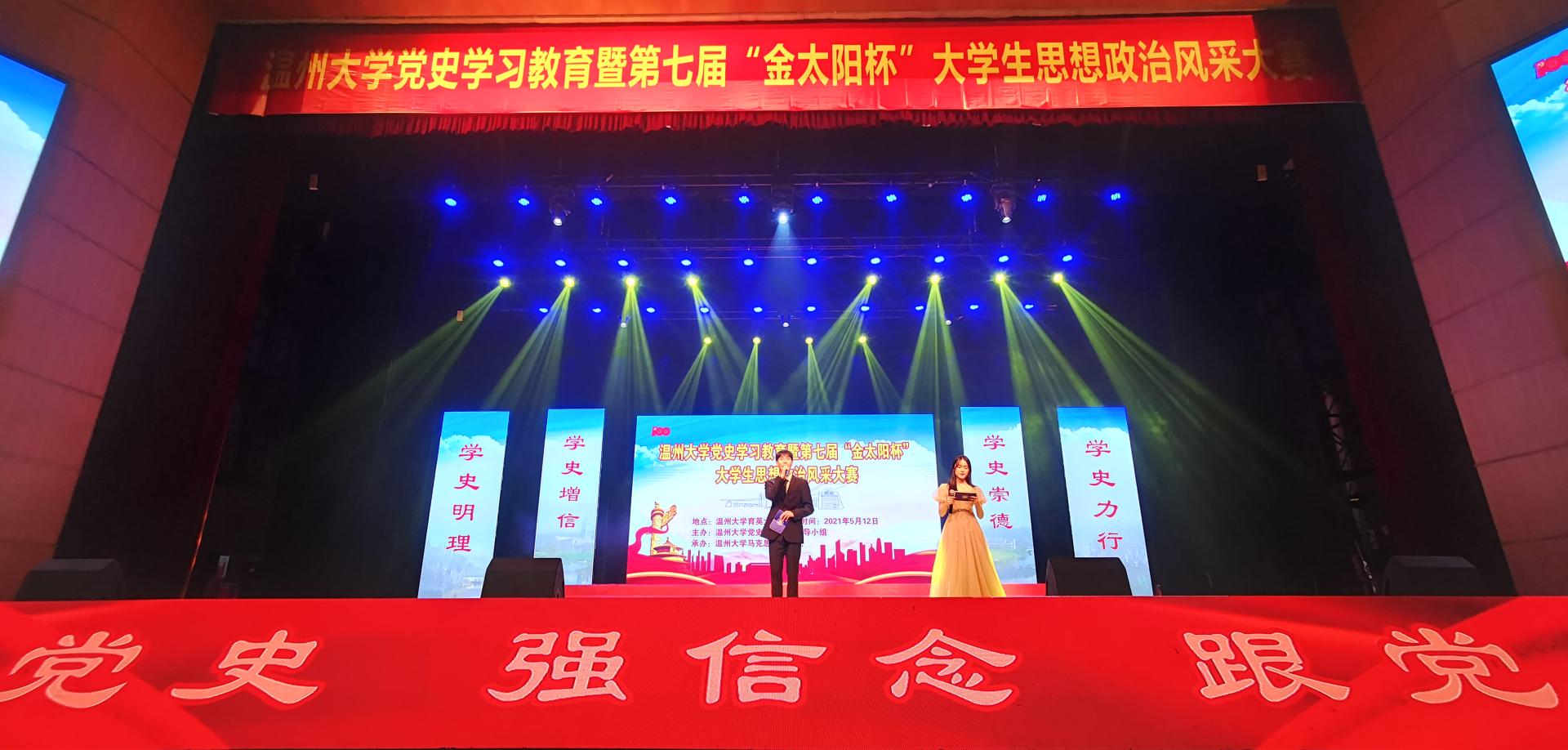 一年一度的大学生思政课风采大赛已成为我校思政课改革建设的一个品牌,也是贯彻落实习近平总书记在学校思政课教师座谈会上的重要讲话精神,锐意推进思政课教学改革创新的有力举措。今年,为隆重庆祝中国共产党成立100周年,讴歌实现中华民族伟大复兴中国梦的奋斗历程,追寻革命先辈的光辉足迹,围绕“学党史、强信念、跟党走”的主题,通过颂红诗、唱红歌,演红剧、展风采,将思政课搬上大舞台,让有风景的思政课走进广大师生心中。