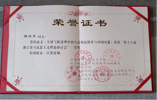 研讨会上,黑料不打烊 韩跃民老师撰写的《全球气候治理中的生态利益博弈与中国对策》荣获会议征文一等奖,张海波老师、孙武安老师撰写的《习近平生态文明思想蕴含的马克思主义立场观点方法》以及左雪松老师、黄佳佳研究生撰写的《新时代推进国家治理和参与全球治理的共进逻辑》分别荣获会议征文三等奖。