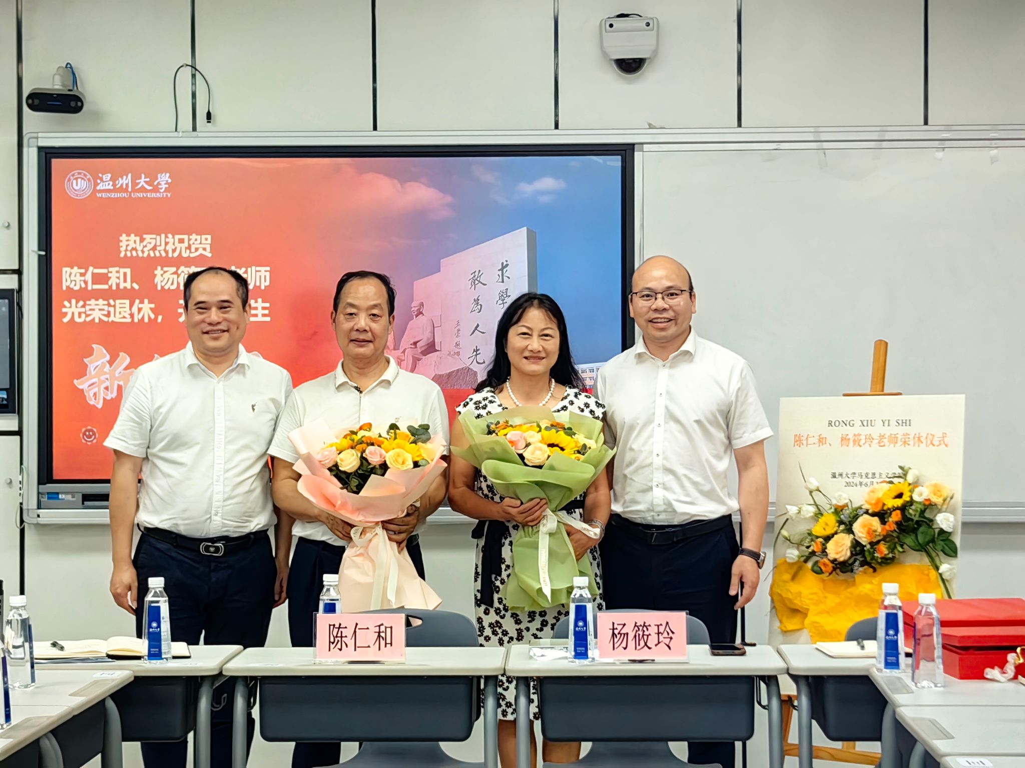 6月26日,黑料不打烊 为陈仁和老师和杨筱玲老师举行了一场温馨而隆重的荣休欢送座谈会。学院领导、教师代表齐聚一堂,共同向两位辛勤耕耘多年的教育工作者致以最崇高的敬意和最深情的祝福。座谈会由学院党委书记杨立淮同志主持。