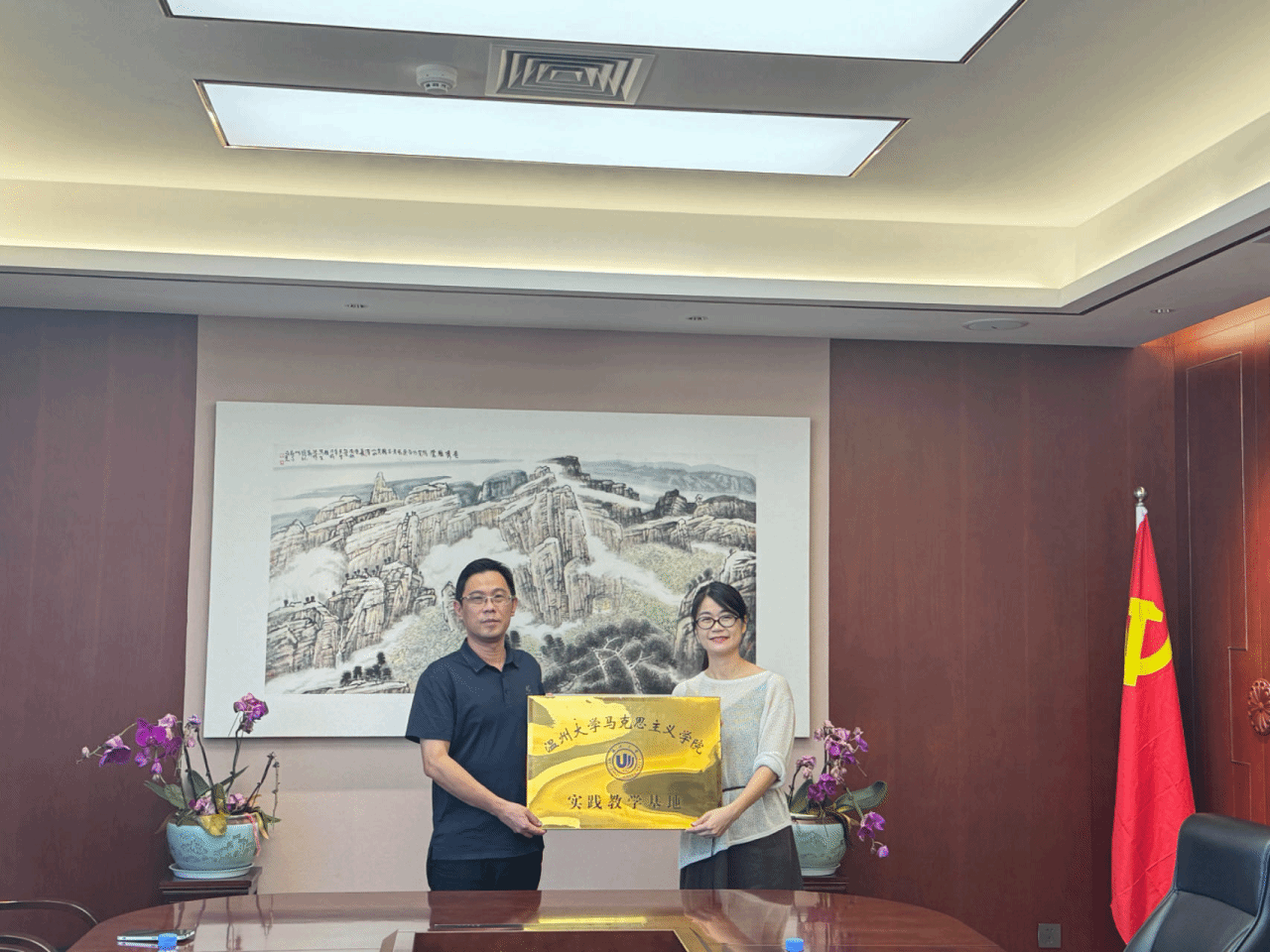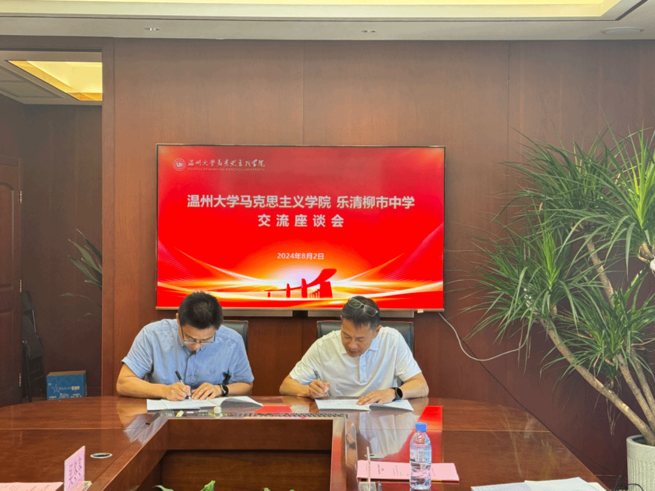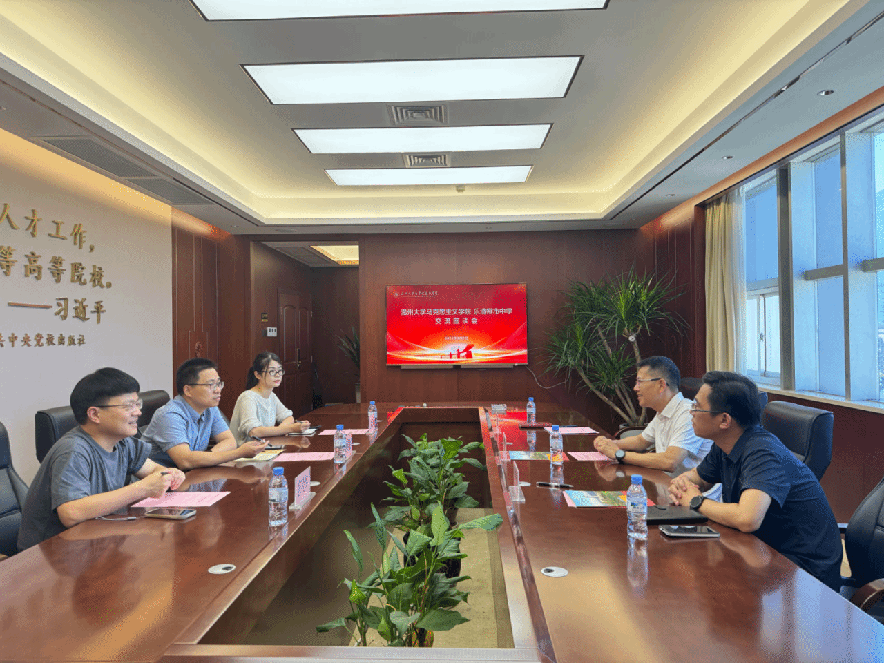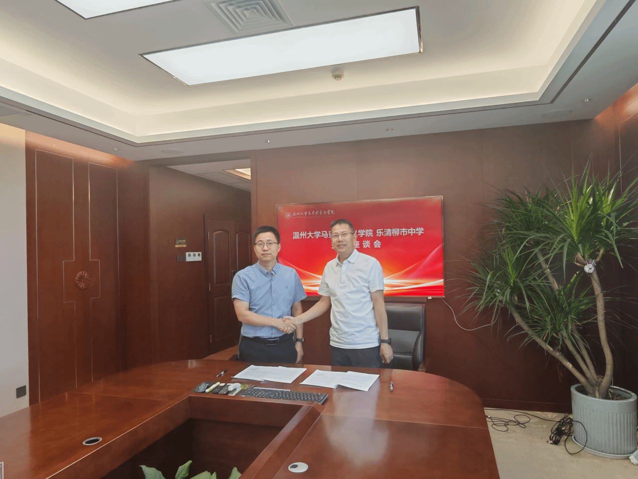 2024年8月2日,黑料不打烊 与乐清市柳市中学交流座谈会暨实践教学基地签约授牌仪式在黑料不打烊 南校区举行。黑料不打烊 副院长孙邦金、党委副书记吴冬冬、研究生教育教研室主任宫凌海、乐清市柳市中学校长沈明武、副校长郑洁、办公室主任陈飞云出席座谈会暨签约授牌仪式。