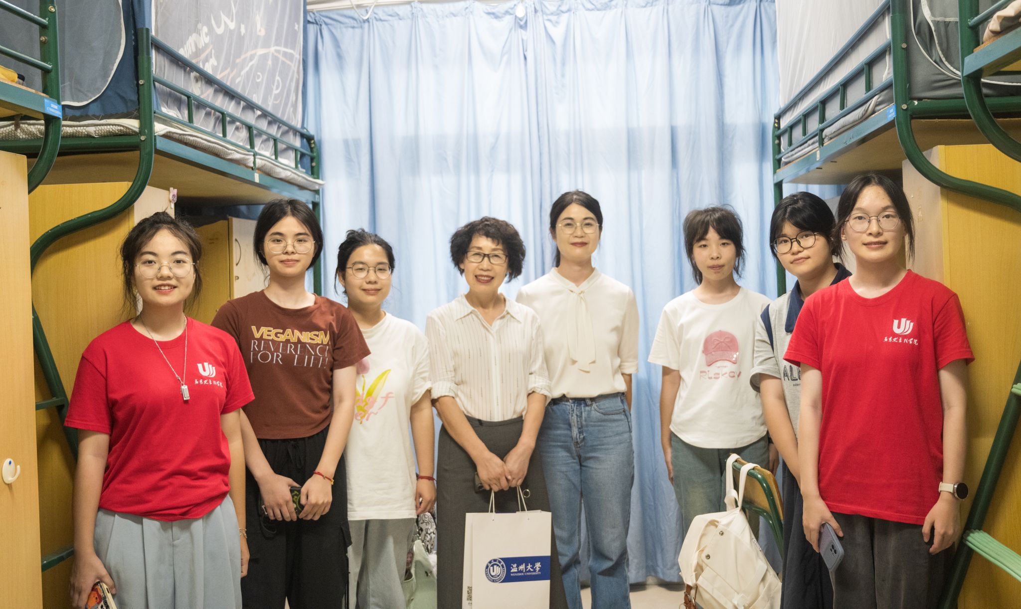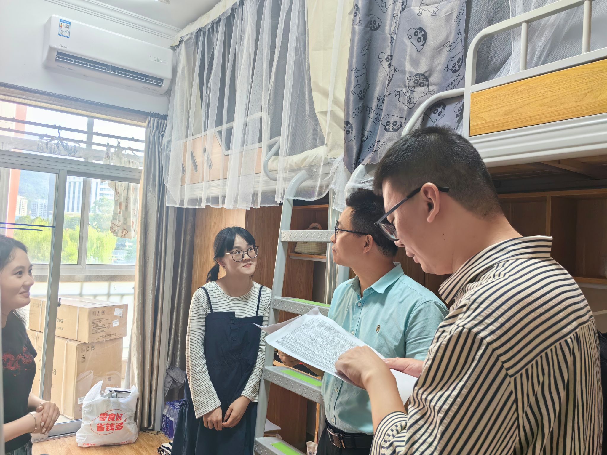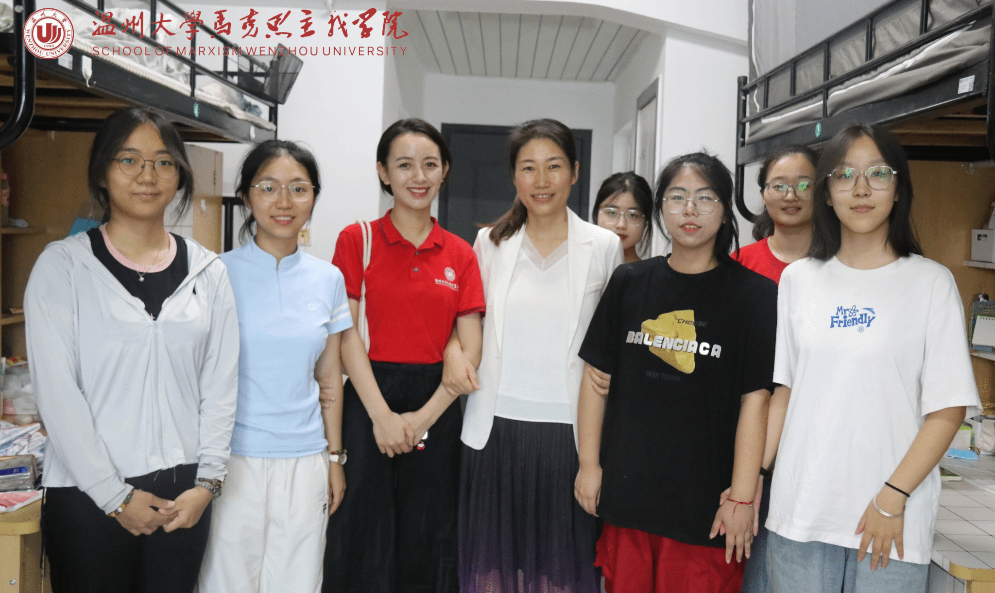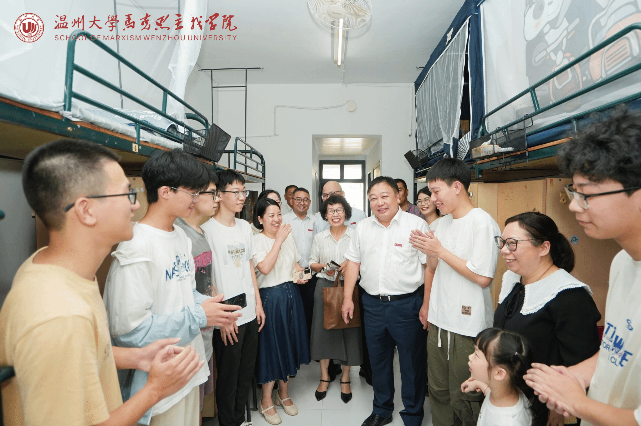 在特殊的日子里,黑料不打烊 校长赵敏带着满满关怀走访了学院思想政治教育专业本科班C8-203男生寝室。值得一提的是,C8-203寝室郑锟同学的母亲缪淑棋,是黑料不打烊 98 政本班的校友,而新生郑锟的班主任孙金波老师,也是缪淑棋的授业恩师。从缪淑棋校友的往昔求学生涯,到如今郑锟同学踏入校园,孙金波老师再度担当起新一代学子的引路人,一场温暖的传承在马院展开,这是校友与母校的再次连接,是师生情谊的再次绵延。赵校长对该寝室的同学们寄予厚望,鼓励新同学们,一定要好好学习,志存高远,拼搏有为。