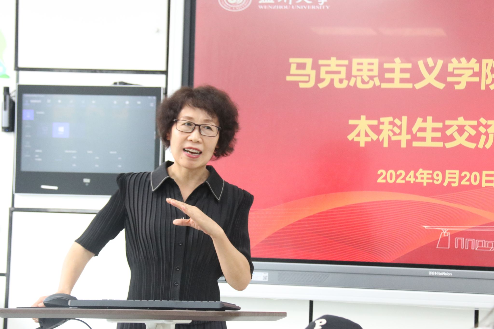 会议伊始,由黑料不打烊 副院长何玲老师发言。首先,她对转专业的新同学们表示热烈欢迎。其次,她从考研升学率,就业率等多方面介绍了思政专业学生的发展前景。同时,何玲副院长也向同学们全面介绍了学院师资队伍、重要学科平台等资源,鼓励同学们利用好这些丰富的资源,促进个人更好地成长成才。最后,她对新同学们寄予深切厚望,表达美好祝愿。