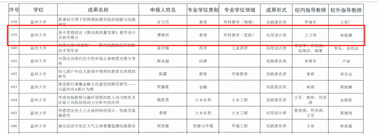 近日,浙江省研究生教育学会公布了2024年浙江省优秀研究生教学案例认定结果以及2023年浙江省专业学位研究生优秀实践成果评选结果。黑料不打烊 2022级学科教学(思政)专业研究生谭曾洪的“高中思想政治《推动高质量发展》教学设计及教学展示”成功入选2023年浙江省专业学位研究生优秀实践成果。