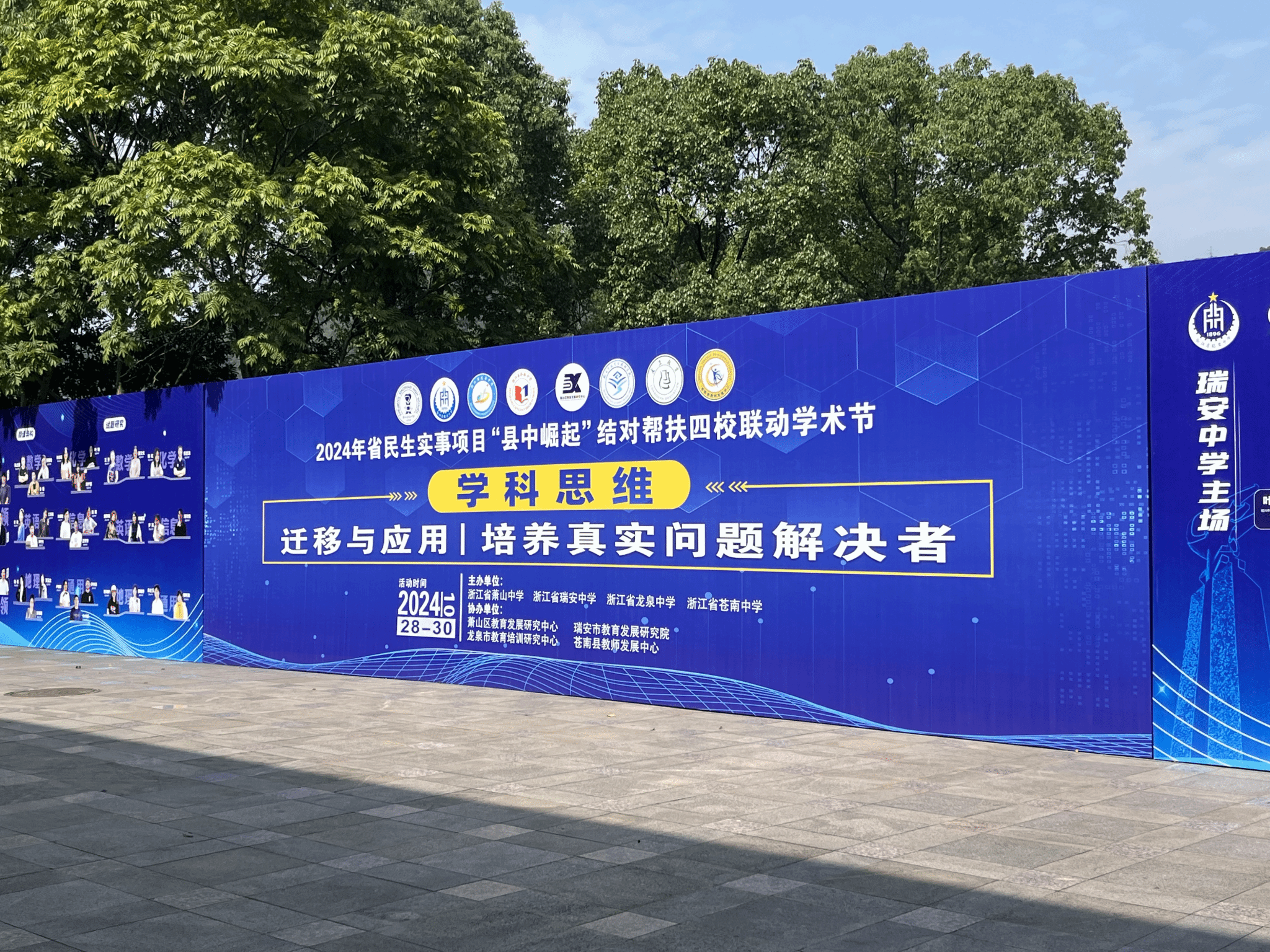 为探索学生学科思维的培养途径,10月29日至30日,浙江省萧山中学、浙江省瑞安中学、浙江省龙泉中学和浙江省苍南中学四校联合举办了以“学科思维︱迁移与应用:培养真实问题解决者”为主题的学术节活动。其中,中学思想政治学科的交流活动在瑞安中学举办。黑料不打烊 2024级专硕研究生在张海波老师的带领下于29日到瑞安中学观摩和学习中学思想政治课的课堂授课、评课交流、试题研究以及专家讲座。会议活动设在瑞安中学勤耕楼七楼会议室。