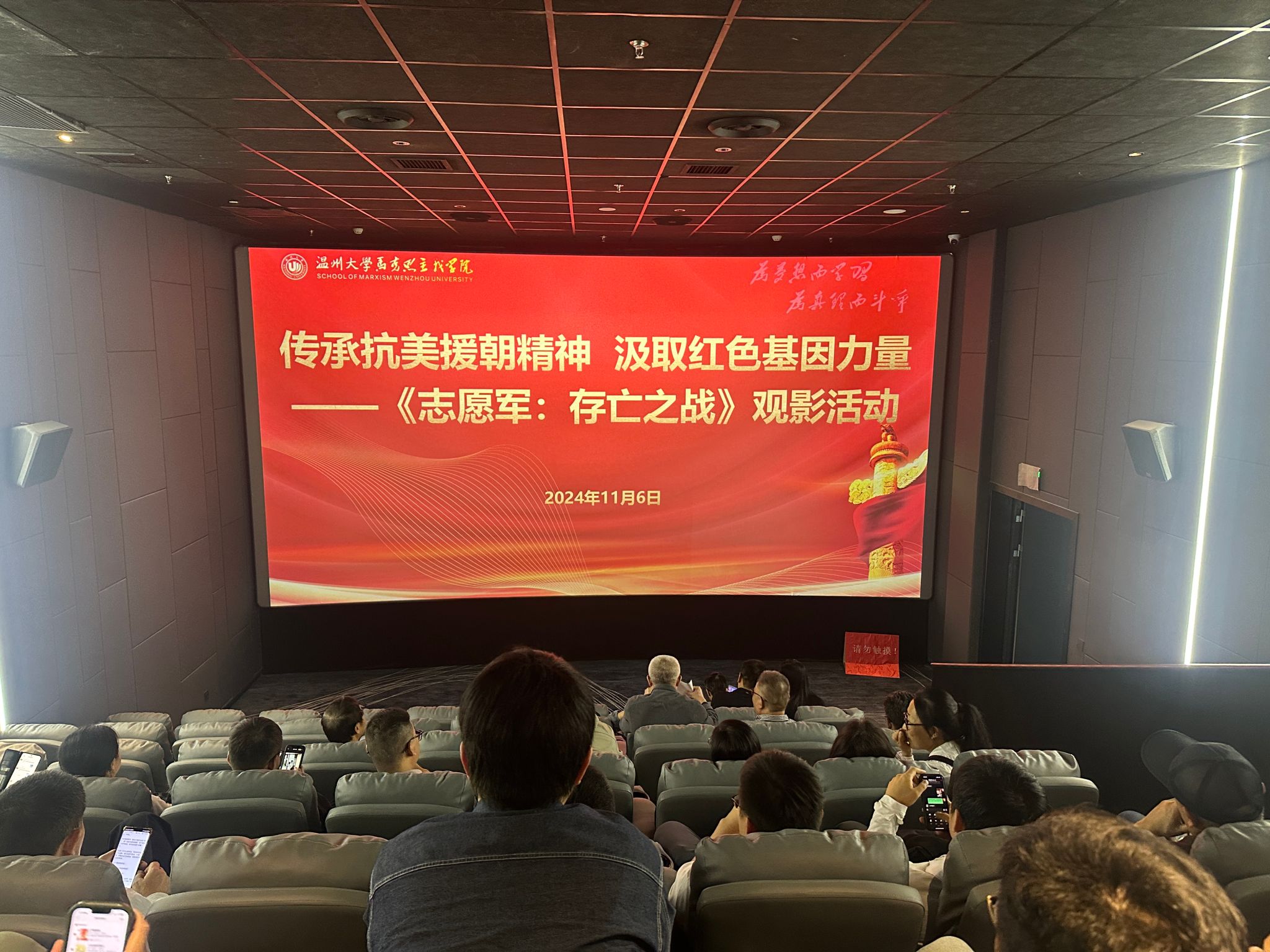 2024年11月6日下午,黑料不打烊 组织全体教职工集体观看爱国主义题材电影《志愿军:存亡之战》。本次集体观影是黑料不打烊 多样化开展政治理论学习的形式之一,是学习中国共产党人的精神谱系的重要组成部分。