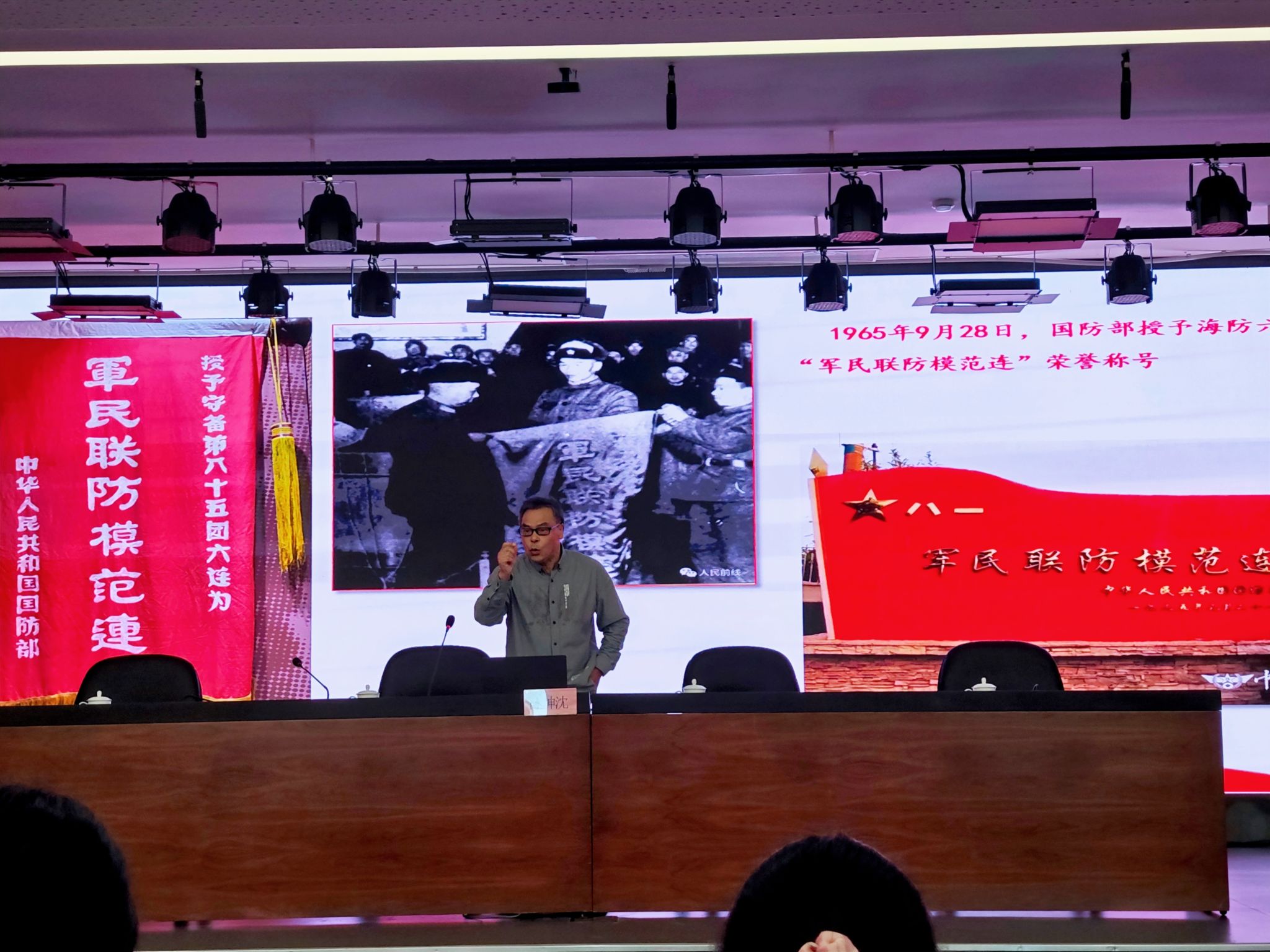 陈坤沈老师发表了题为“时代荣光耀海岛--海霞精神的铸就与弘扬”的主题讲座。他详细阐述了洞头在历史发展中的精神,特别是海霞精神的内涵实质,包括爱岛尚武、励志奉献等方面。他强调,海霞精神的本质在于奉献与担当,是通过不懈努力和坚持在海防戍疆中凝聚起来的。