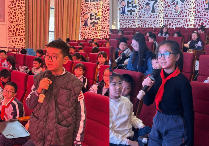 李慕帆同学介绍了2023年习近平总书记考察北京育英学校的经历,通过人民教育家黄大年、奥运冠军郑钦文等案例的讲解,诠释习近平总书记对少年儿童在体育锻炼、热爱劳动、勇攀科技高峰等方面的殷殷嘱托。