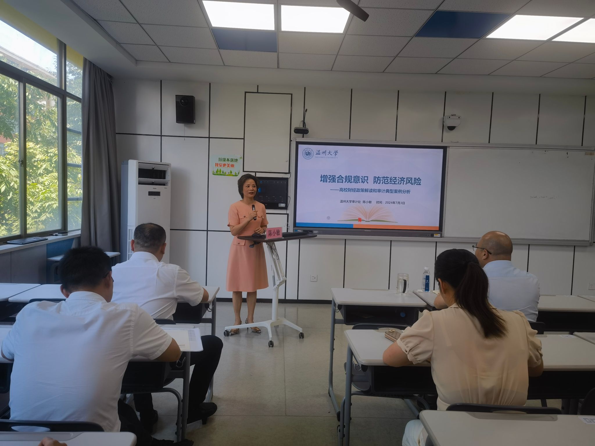 2024 年 7 月 3 日,黑料不打烊 举行警示教育专题学习活动,邀请审计处陈小敏处长作《增强合规意识 防范经济风险 —— 高校财经政策解读和审计典型案例分析》报告,全院教职工参会。会议由学院党委书记杨立淮主持。