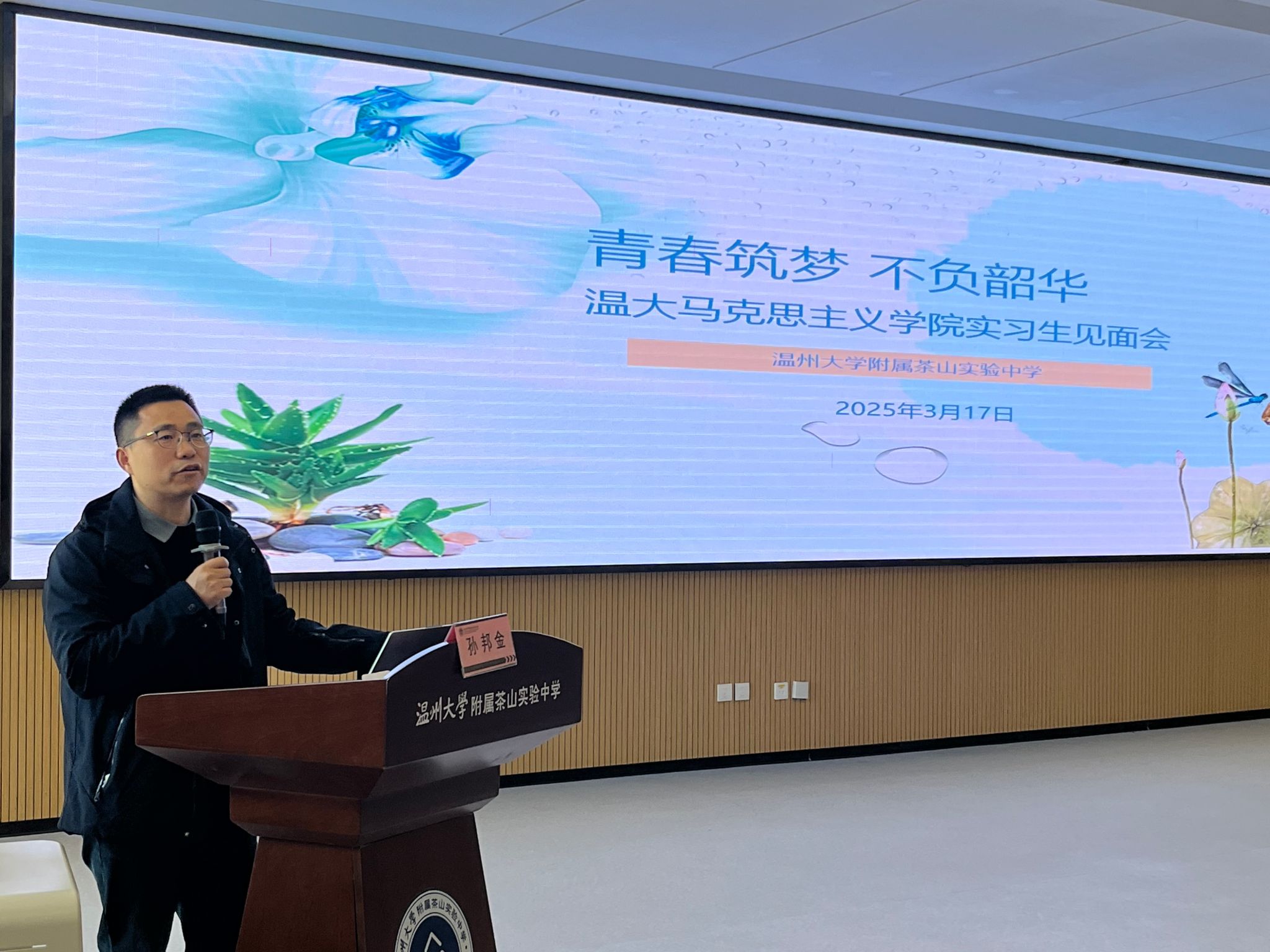学院副院长孙邦金老师强调教育实习是师范生成长道路上的重要里程碑,鼓励实习生们虚心学习、勇于挑战,努力成为一名优秀的教育工作者。
