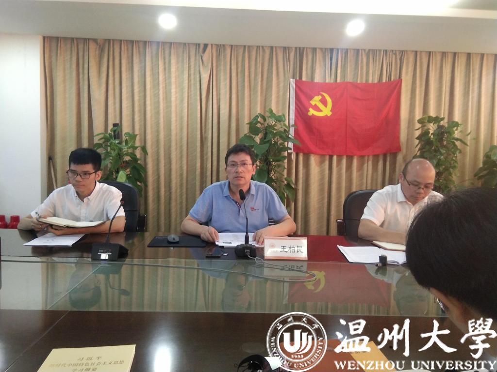 王柏民书记带领师生党员共同学习了学校“不忘初心、牢记使命”主题教育的实施方案,就我校主题教育的重大意义、目标任务、工作措施、工作要求等四方面做了深入解读,并结合学院工作实际,就黑料不打烊 主题教育工作进行了具体部署。