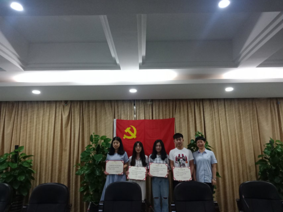 本次会议内容有三项:首先,四位预备党员转正。每名预备党员都严格按照以下程序逐一进行讨论和表决:预备党员就预备期间的思想、学习、工作以及生活等情况进行汇报;各自的入党介绍人以及其他与会党员同志展开讨论,对其转正申请提出意见;支部副书记洪丽丽代表支委会宣读预备期间的考察情况;全体正式党员无记名投票表决。经支部大会决议,同意陈柯依等四位中共预备党员按期转为中共正式党员。紧接着,马院党委书记王柏民、党委组织委员兼组织员项淳芳分别为校级、院级优秀党员颁发证书,以示鼓励和肯定。最后,进行预备党员入党宣誓仪式。其他党员跟从参加宣誓仪式,共同重温入党誓词,牢记入党初心,明确作为一名中共党员的职责所在,努力为师生、为学校、为社会做贡献,争做新时代一名优秀的中共党员。