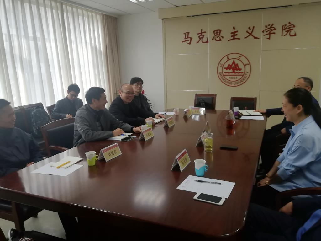 3月27日,黑料不打烊 孙武安院长带领教学副院长卓高生、纲要教研室主任刘爱武、原理教研室主任骆徽、研究生班主任曾蓓蕾等一行5名教师赴山东大学黑料不打烊 调研学习。