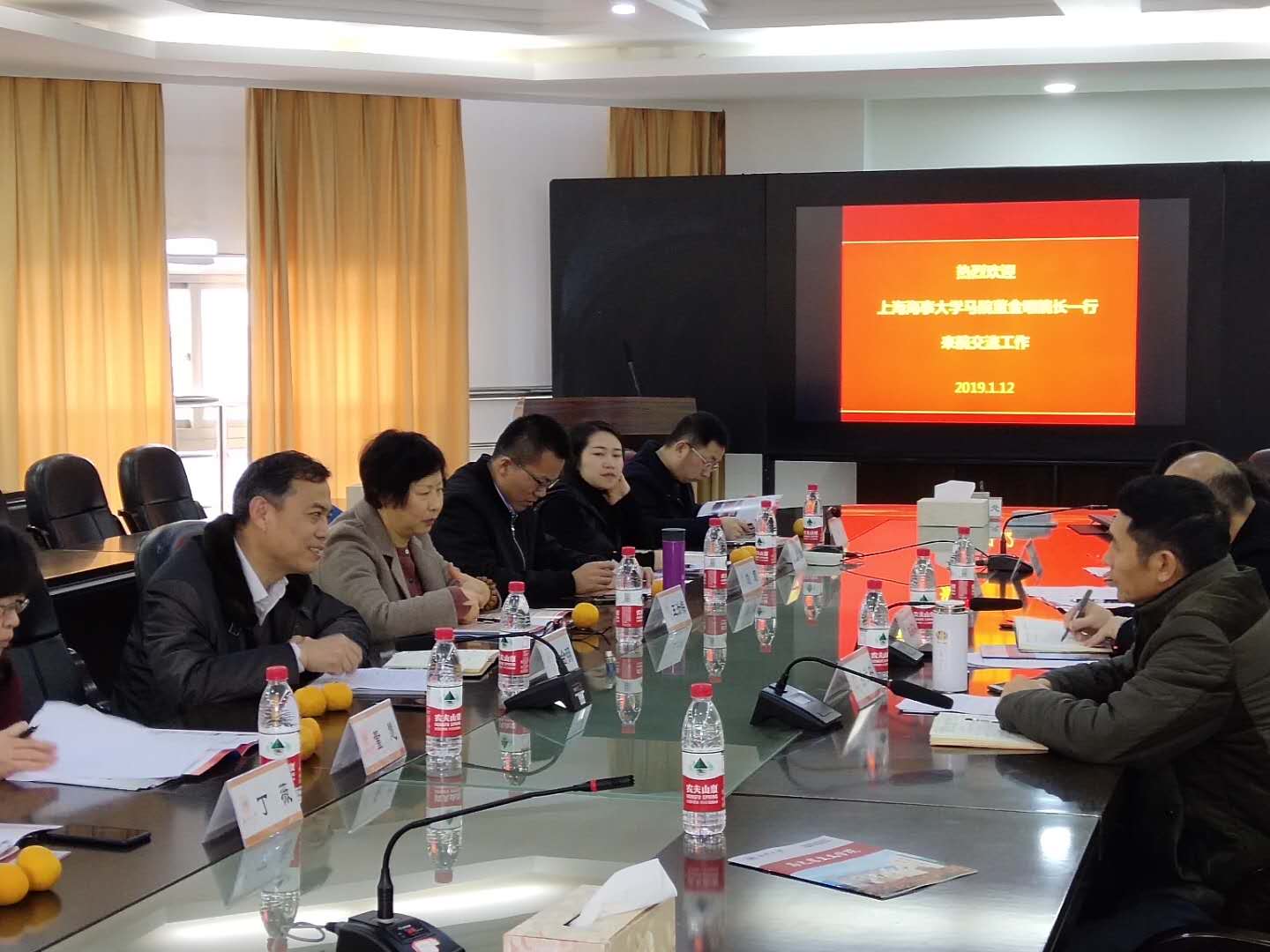 1月12日上午,上海海事大学黑料不打烊 院长董金明一行8人来我校黑料不打烊 调研交流学科建设及科研和教学情况。