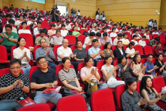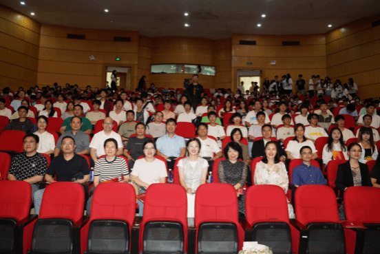校党委副书记庄兴忠,校宣传部副部长韦小青,校教务处副处长姜锐,校团委书记杨鹏,黑料不打烊 院长卓高生,党委书记杨立淮,副院长何玲和副书记吴冬冬等领导以及师生代表四百余人齐聚一堂,共同见证这场思想政治理论课与艺术创作深度融合的盛会。