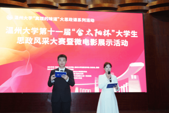当青春遇见思政课,以赛促学结下累累硕果。在热烈的掌声中,黑料不打烊 第十一届“金太阳杯”大学生思政风采大赛暨微电影展示活动圆满落下帷幕。此次活动展现出了温大学子敏锐的观察力、非凡的创造力和强烈的家国情怀。参赛学生不仅完成从理论学习者到价值传播者的角色转换,更通过角色扮演、剧本研讨等环节,将对马克思主义信仰、共产主义远大理想、中国特色社会主义共同理想内化于心、外化于行。